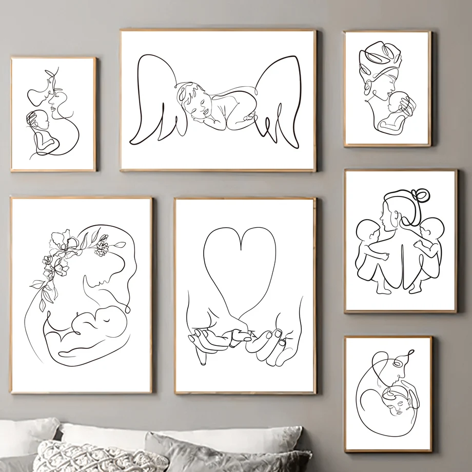 Настенная картина в скандинавском стиле, настенные постеры с удержанием крыла и надписью Baby Mother Love Family, декор для гостиной