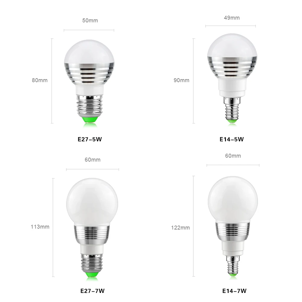 Светодиодсветильник RGB-лампа E14, E27, 5 Вт, 7 Вт, 85-265 в