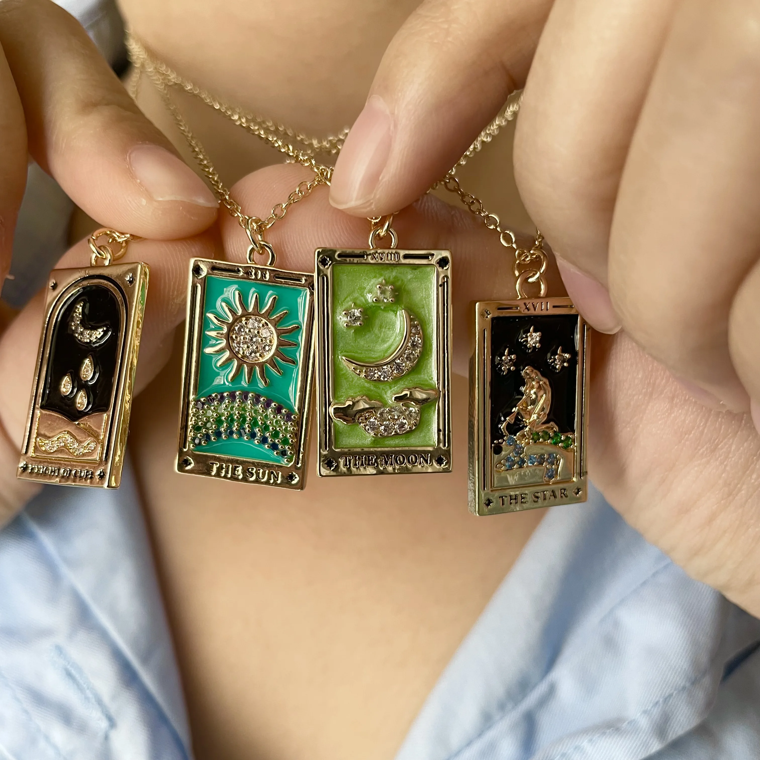 Женское винтажное ожерелье из нержавеющей стали, эмалированное ожерелье с подвеской в виде карты, солнца, Луны, звезды, таро, мистик, Подарочная бижутерия