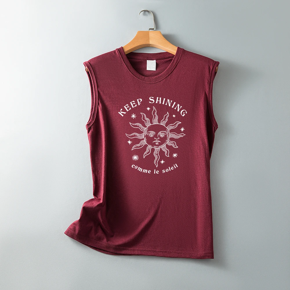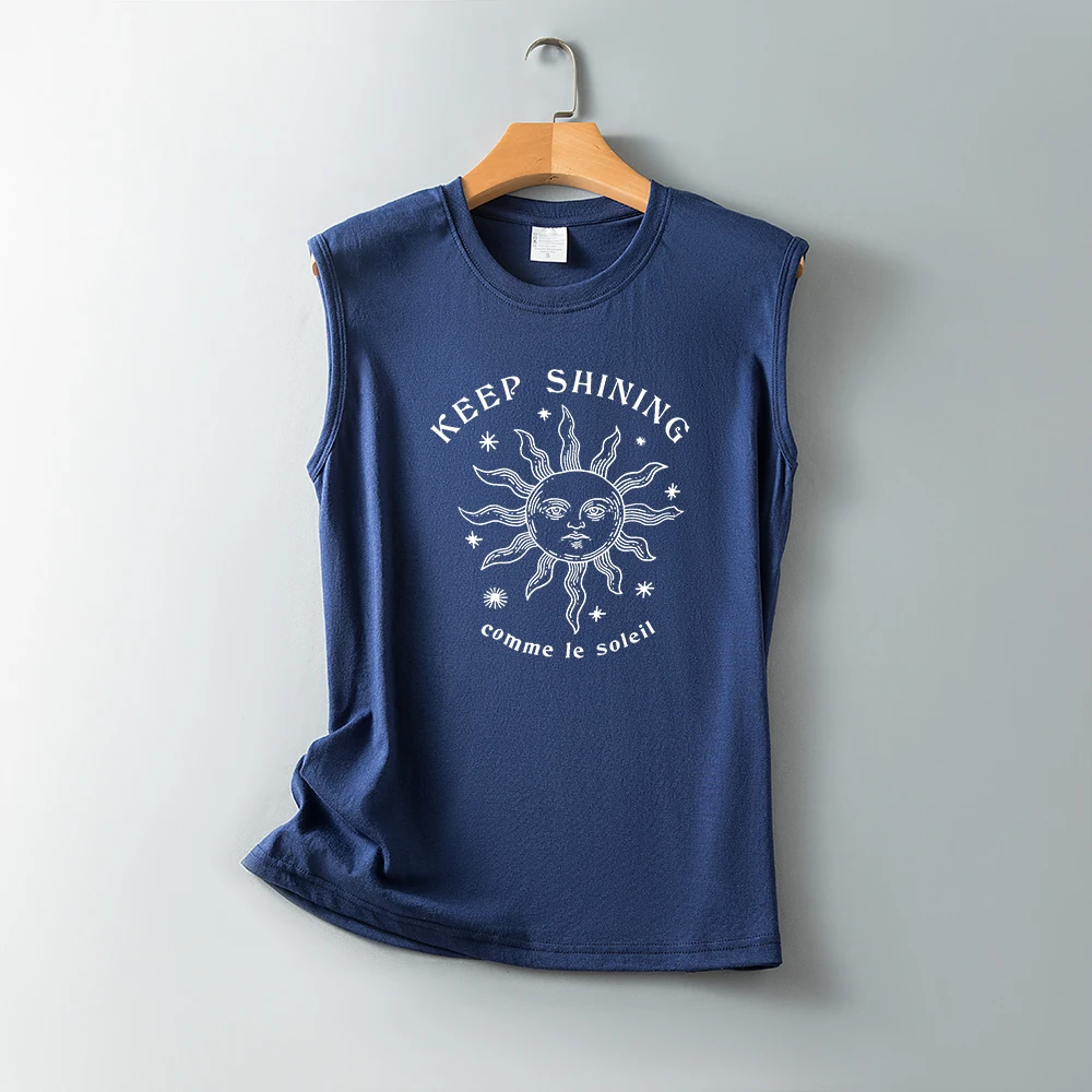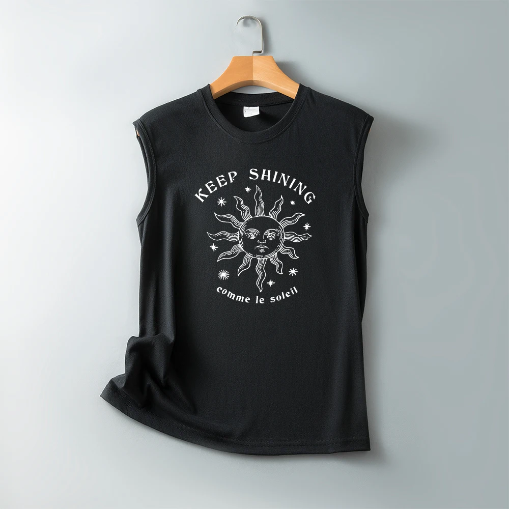 Женская футболка с принтом Keep Shining Comme Le Soleil, Винтажная футболка с коротким рукавом, без рукавов, забавная Солнцезащитная футболка, Harajuku, летние топы, футболки