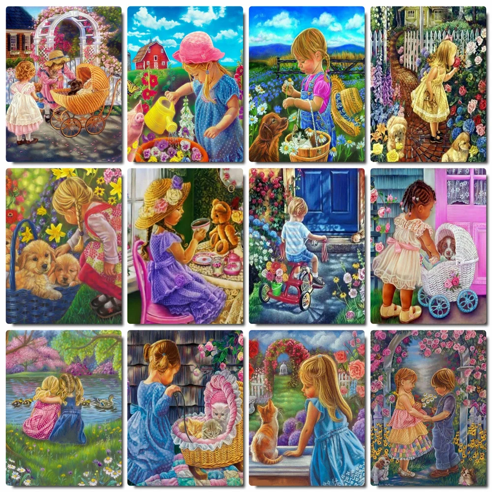 HUACAN живопись маслом по номерам девушка фигура расписанная вручную картина по номеру сад рисунок на холсте Детская комната Декор