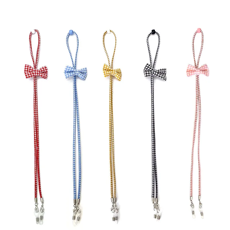 Цветной клетчатый бант на цепочке для очков, винтажный женский держатель для маски на лицо, нескользящий шнурок на шею, веревочный ремешок для девочек и детей, Новинка