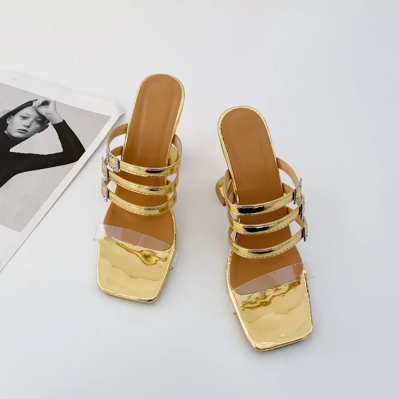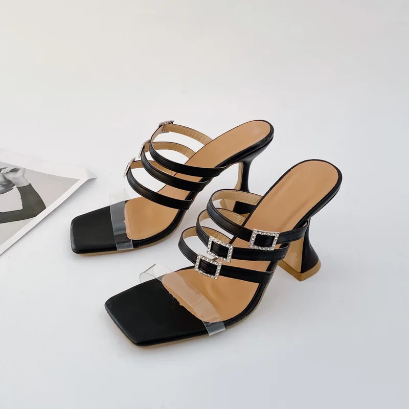 Туфли-лодочки женские на очень высоком каблуке с открытым носком и пряжкой