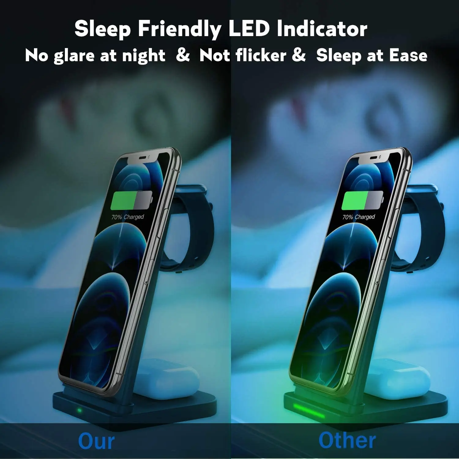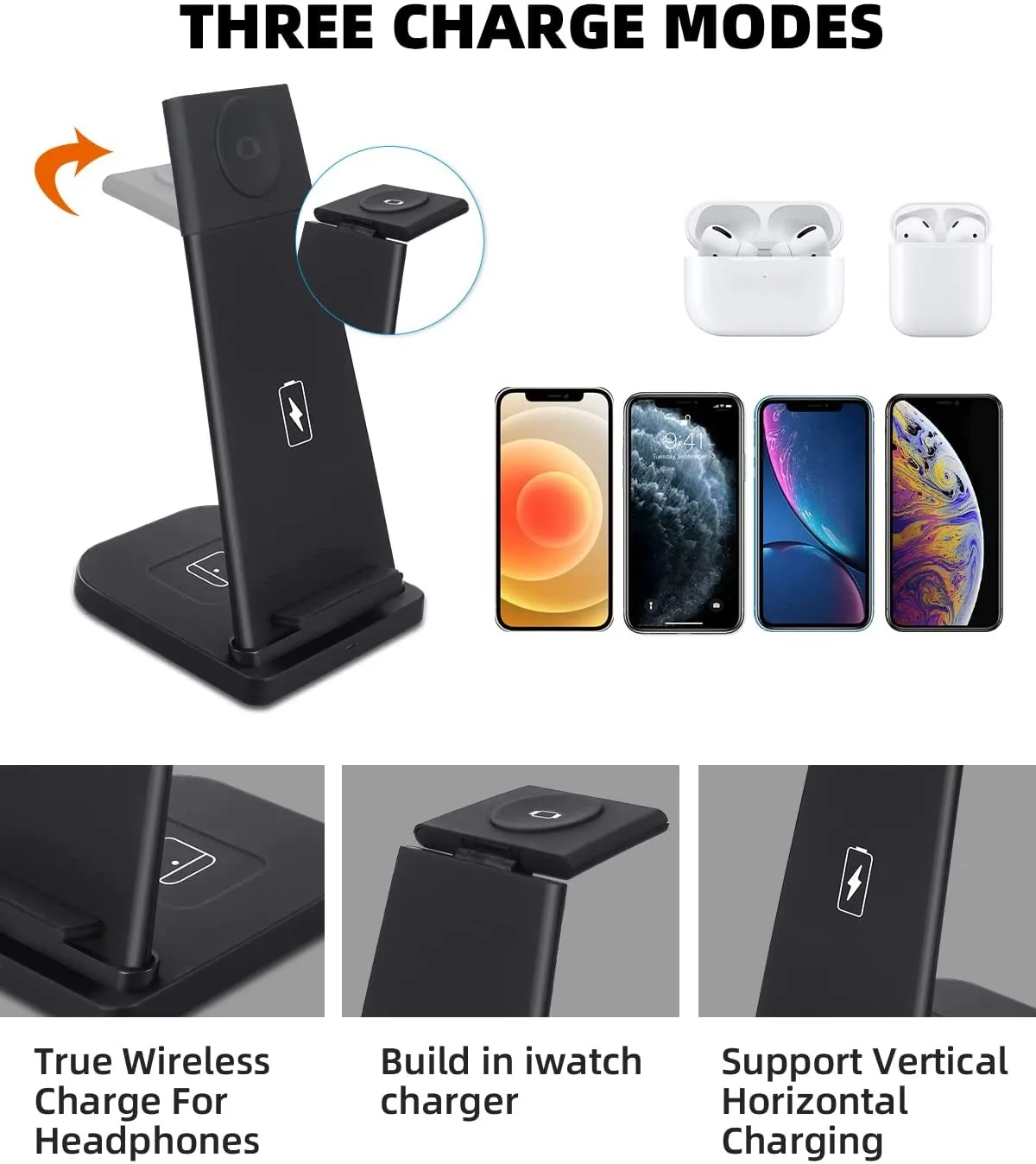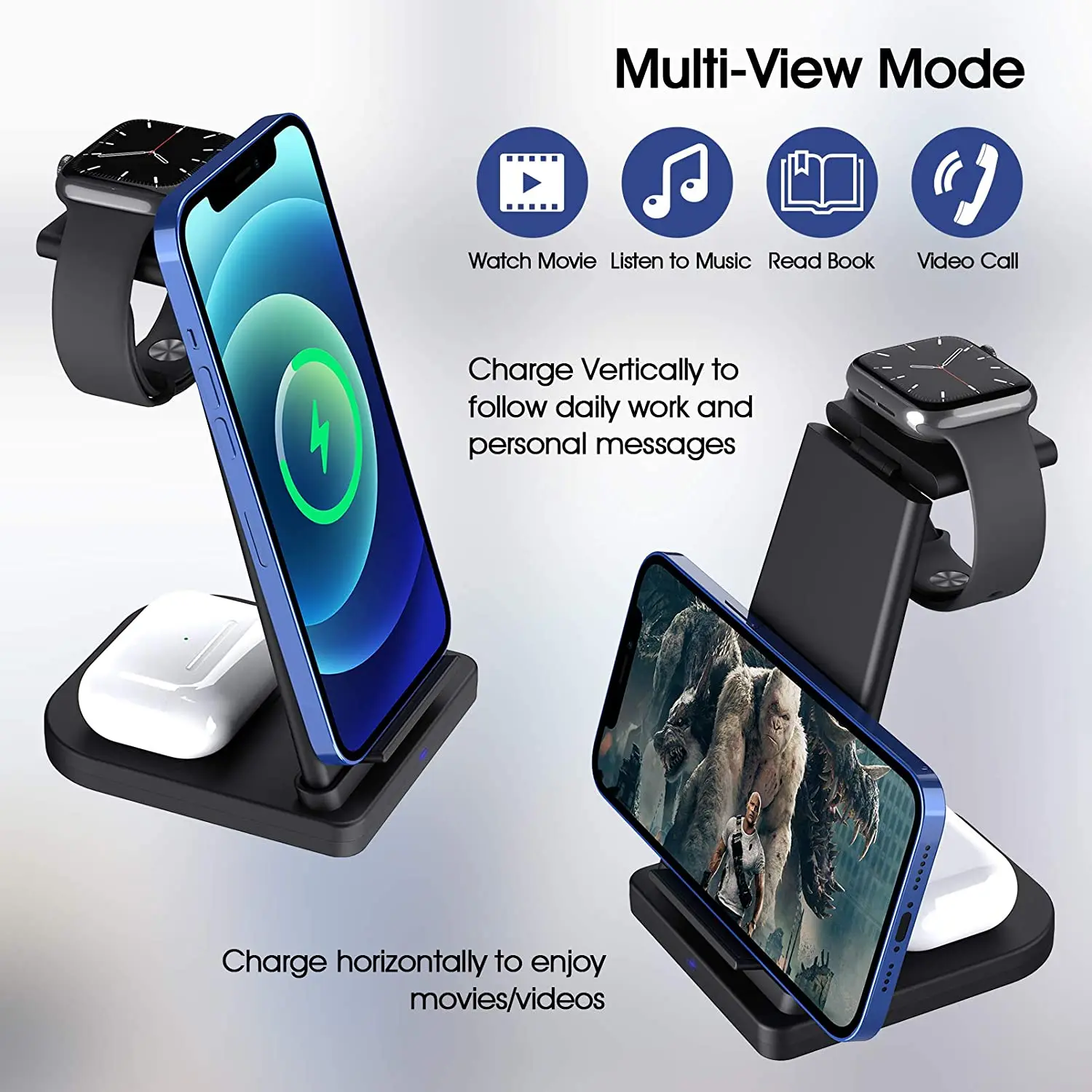 Беспроводное зарядное устройство 3 в 1, 15 Вт, быстрая зарядка, магнитная док-станция Qi для Apple Watch 7 6 5 4 Airpods Pro iPhone 13 12 11 XS XR X 8