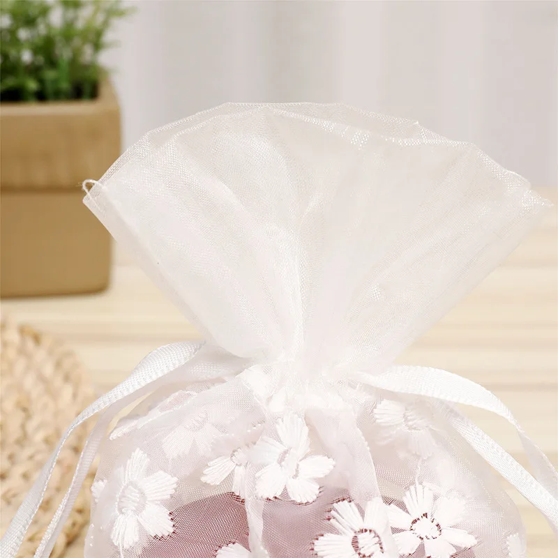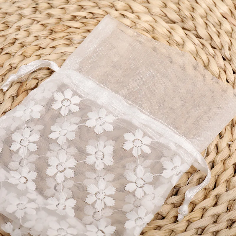 5 шт., 10*14 см, сетчатый карман на шнурке, прозрачная Сетчатая Сумка, белая Цветочная вышивка, коллекция, карман для хранения ювелирных изделий, подарочная сумка