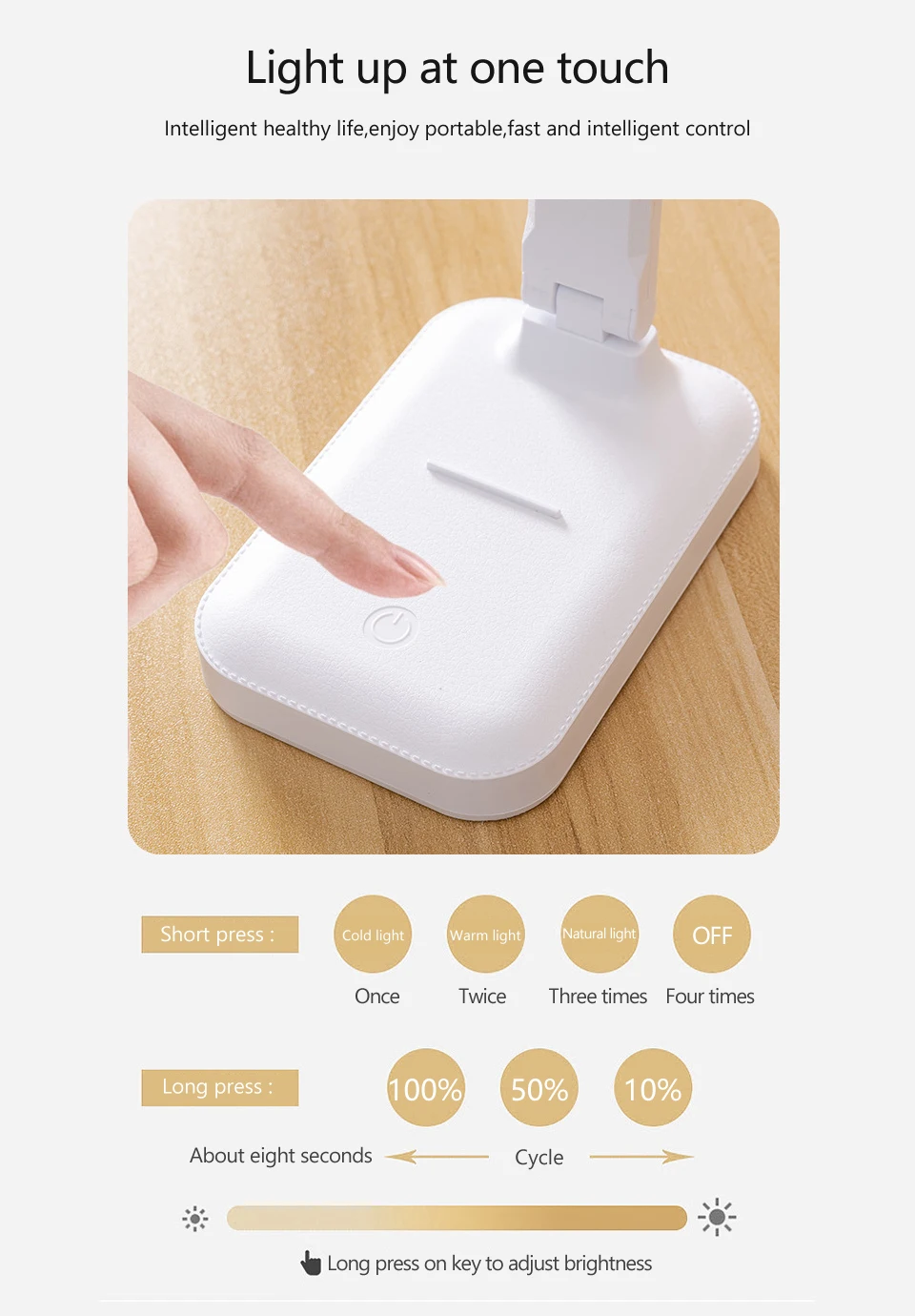 светодиодная лампа настольная лампа лампа настольная Светодиодная настольная лампа с защитой глаз, USB светильник для чтения с сенсорным управлением и плавной регулировкой яркости, двойного использования, 3 цвета
