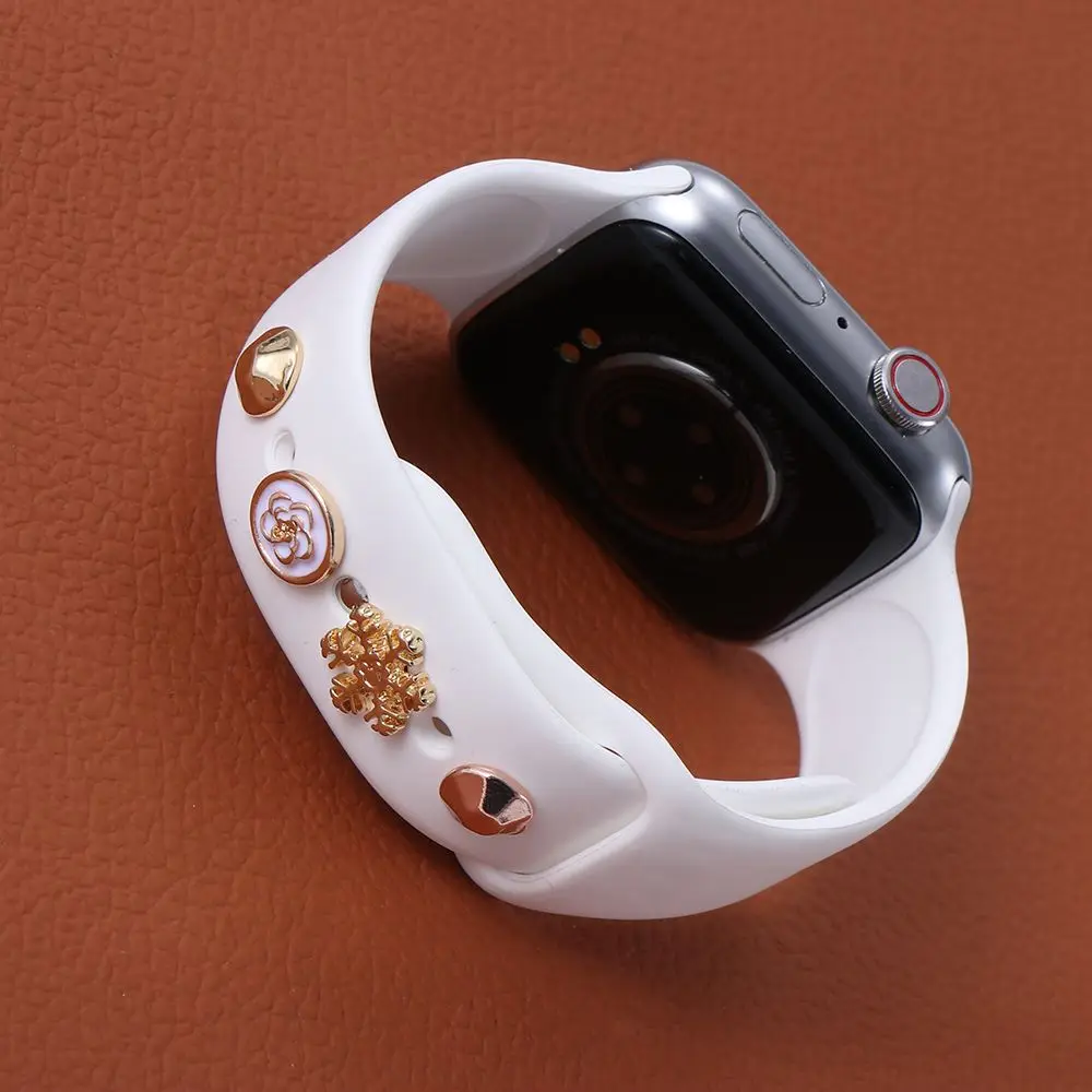 Силиконовый ремешок, декоративные гвозди для браслета Apple Watch, алмазные подвески в виде снежинки, металлические Креативные аксессуары с заклепками для iwatch