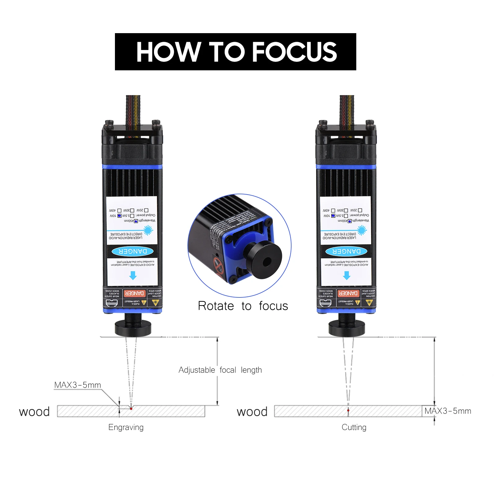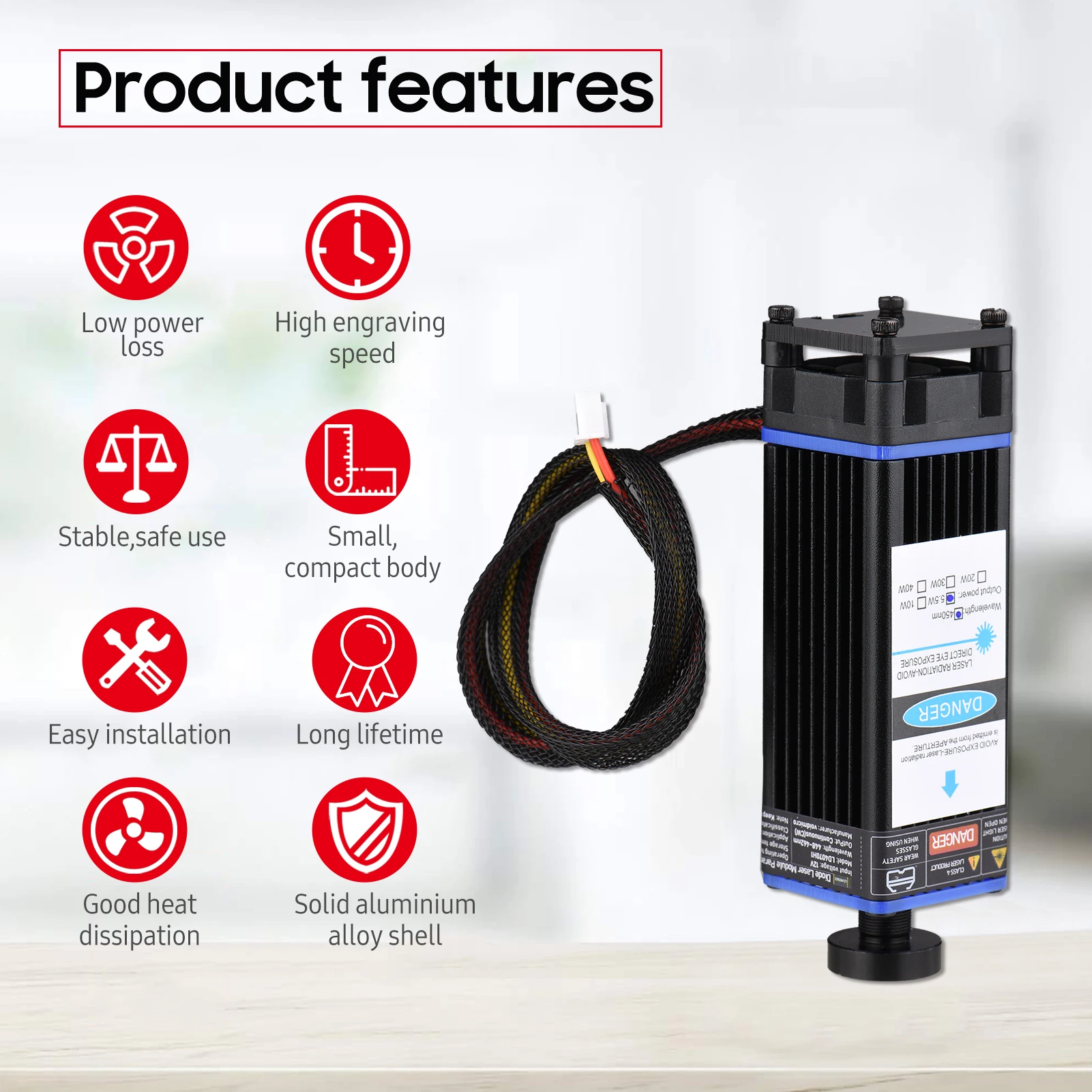 Лазерный модуль 450 нм 40 Вт, Лазерная гравировальная головка с фиксированным фокусным расстоянием, высокоскоростной лазерный гравер, резак, 3D принтер, фрезерный станок с ЧПУ