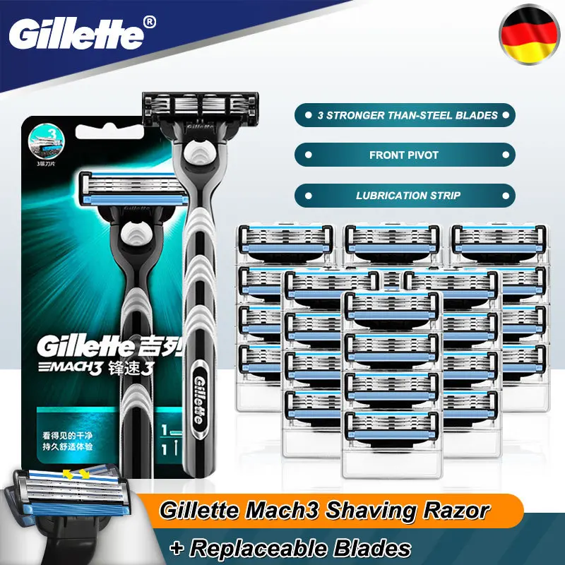 Для мужчин бритва Gillette Mach 3 с сменные лезвия для бритвы для заправки зажигалок для Для мужчин уход за кожей лица удаления волос 3-Слои острая, для бритья машина
