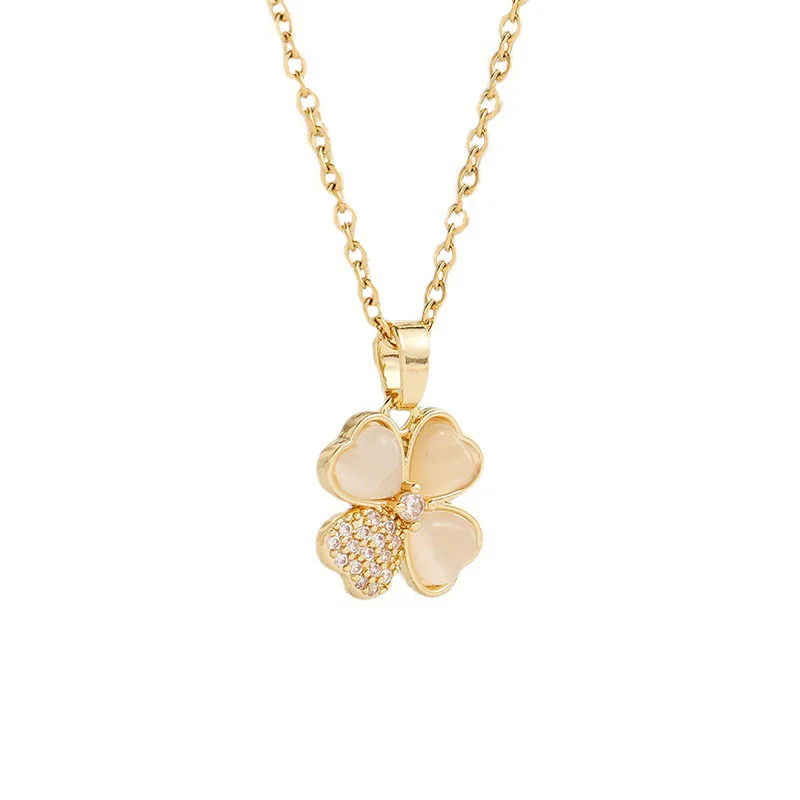 Цепочка с подвеской клевер из титанового камня, 18 карат