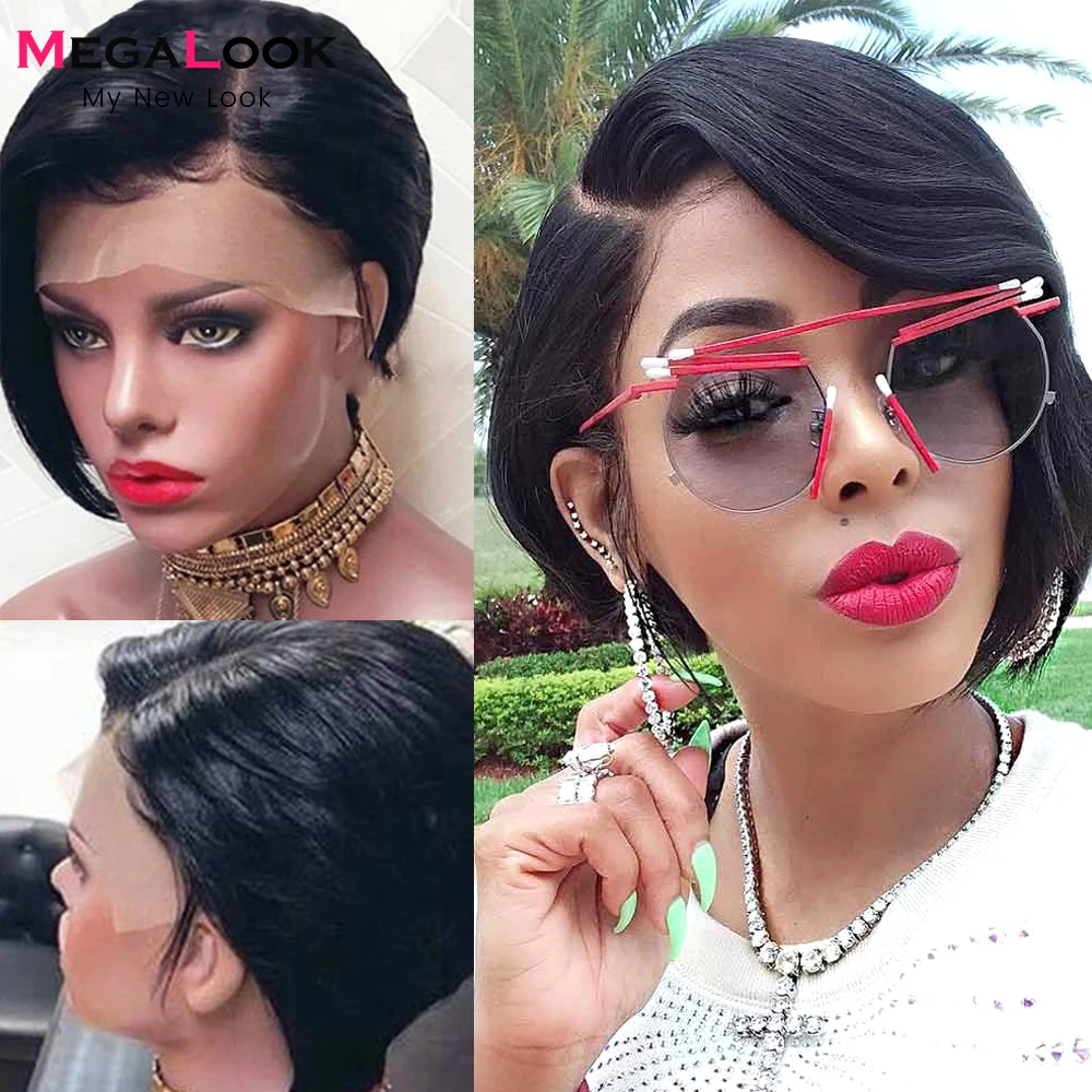 Megalook 13x5x2 короткий парик Боб парик кружевные передние человеч...
