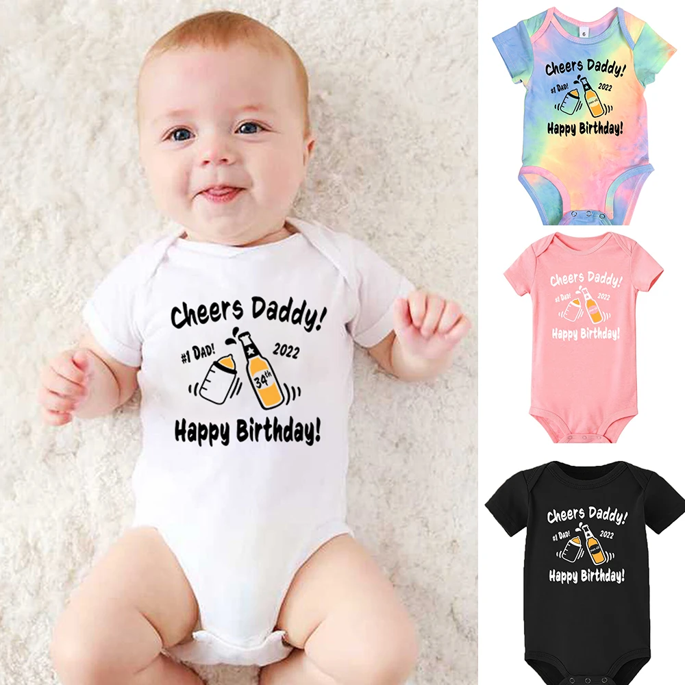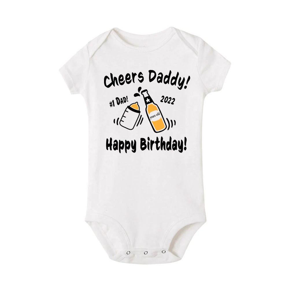Боди с надписью «Cheers Daddy Happy Birthday» для маленьких мальчиков и девочек; Детский комбинезон на заказ; Топы для малышей; Подарок для отца и дяди