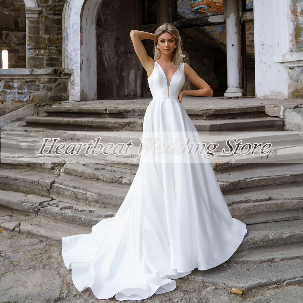 Простое белое свадебное платье для невесты 2022, атласное свадебное...