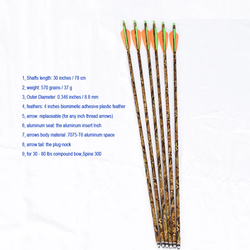 6 шт 30 дюймов позвоночник 300 алюминиевая стрела меняемая стрела камуфляжная алюминиевая стрела для 30-80lbs составной лук или длинный бант