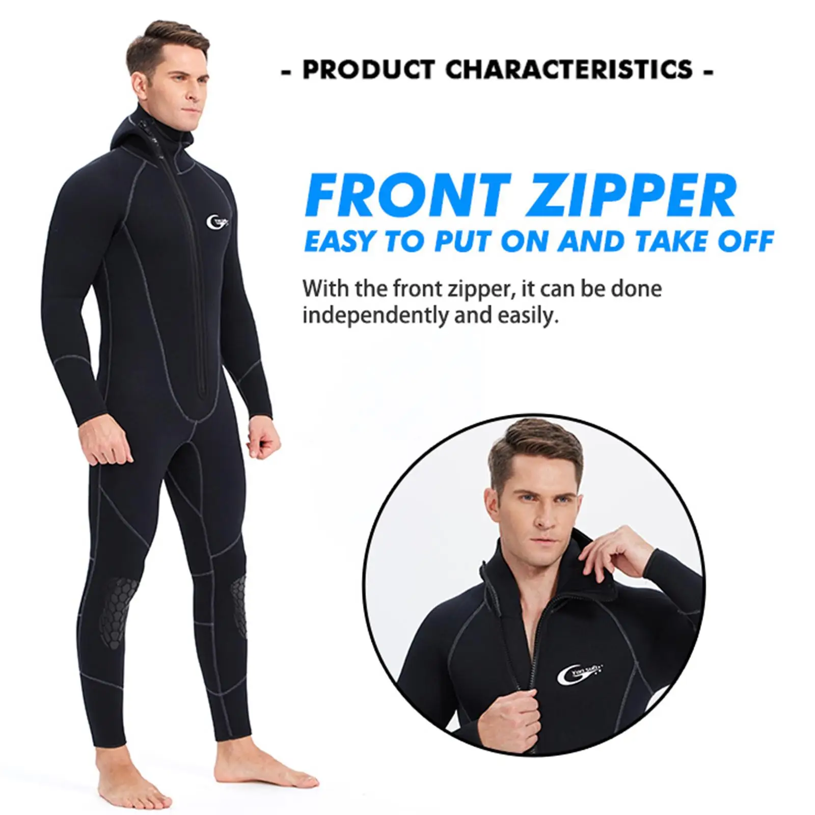 182 Размер см/72 кг-л (версия 5 мм!) Плотно, идеально подходит, рукава на руках и ногах достаточно длинные. Капюшон также идеально подходит. Материал хорошего качества, прочная молния. Доставка была всего 3 недели. Очень рекомендую товар и продавца!