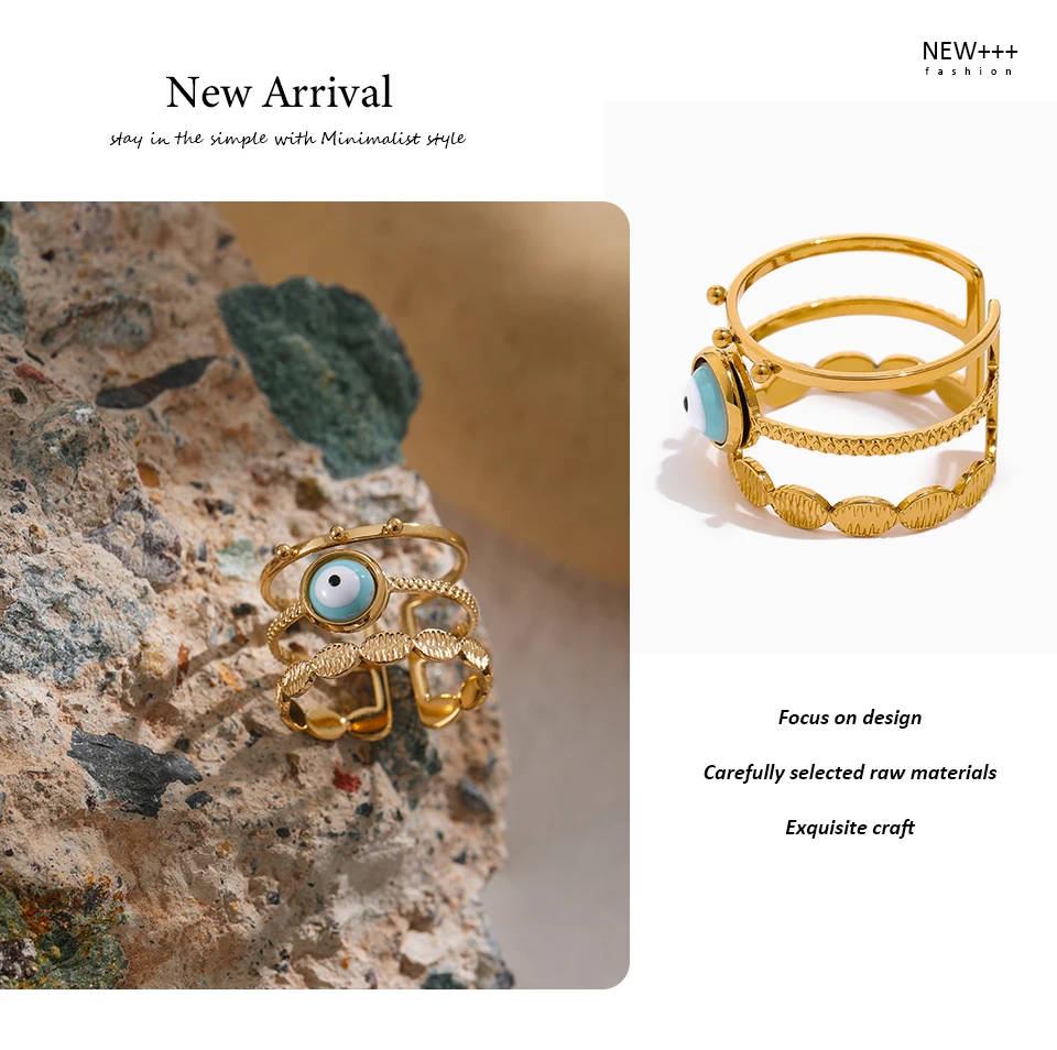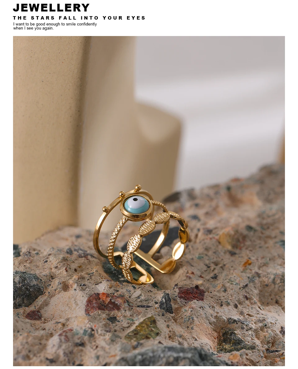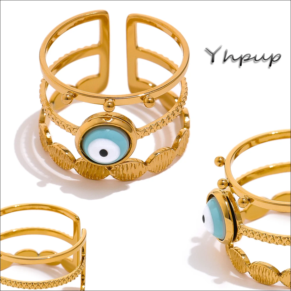 Золотое регулируемое кольцо Yhpup с бусинами в виде турецкого дьявола, из нержавеющей стали, ювелирное изделие для женщин, бижутерия, подарок для женщин