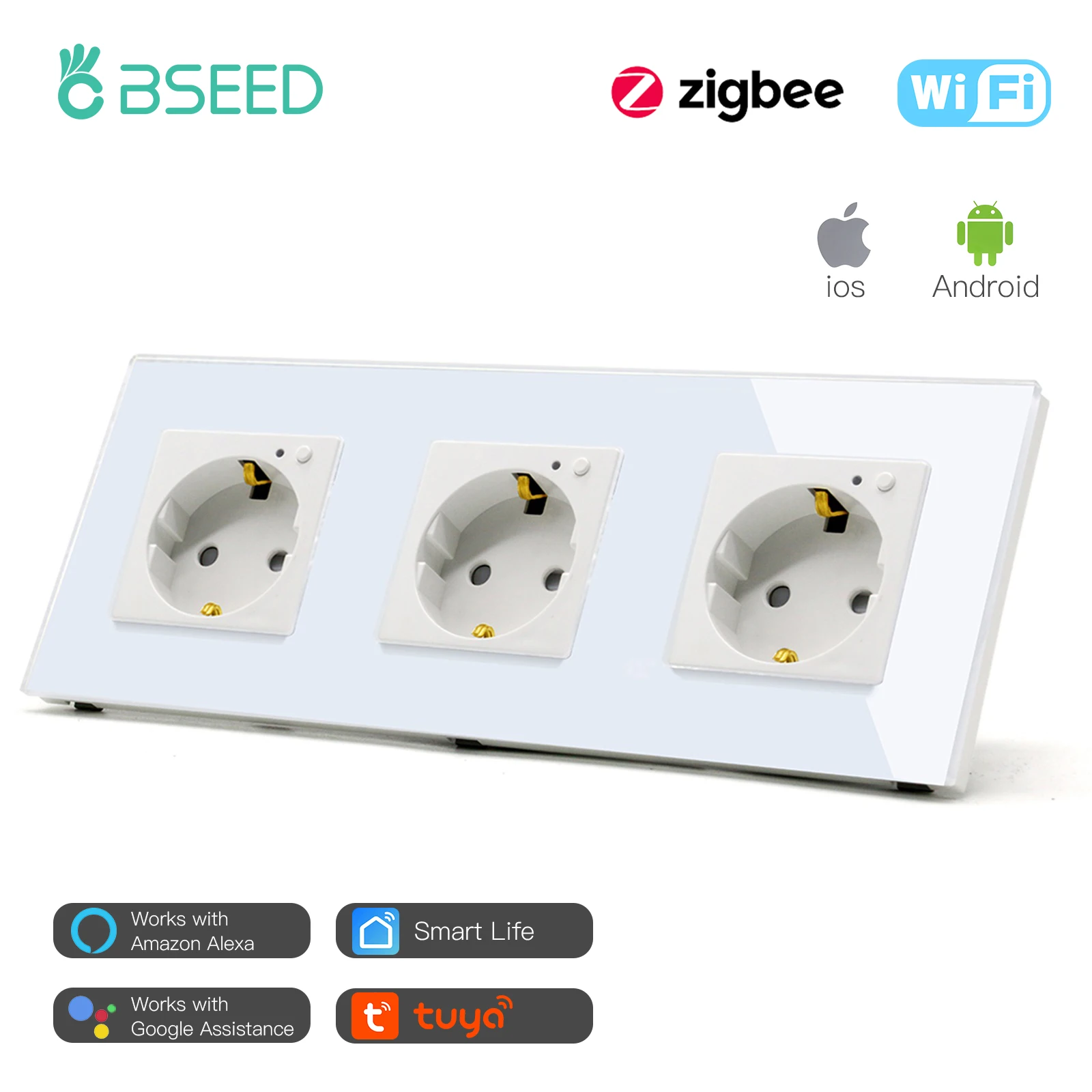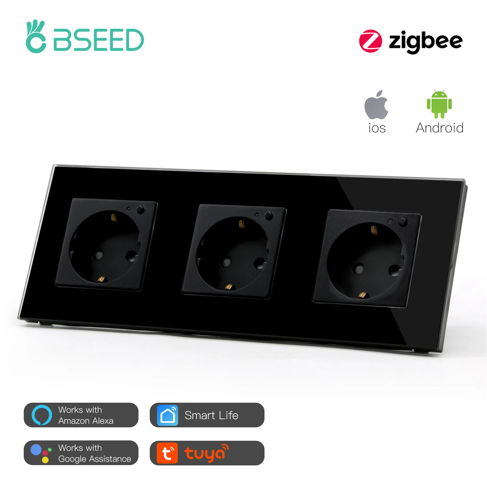 Bseed ZigBee стандарт ЕС и России Тройная настенная умная розетка работает с шлюзом Tuya Smart Life Alexa App Голосовое управление