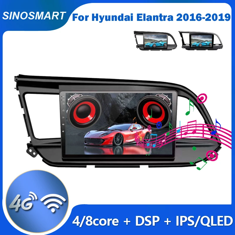 Автомобильный радиоприемник Sinosmart для Hyundai Elantra 2016-2019 GPS навигационный мультимедийный плеер IPSQLED экран 8 ядер, DSP 48EQ