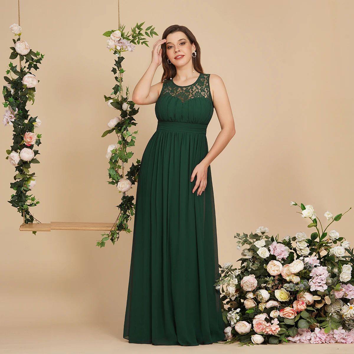 Зеленые кружевные вечерние платья, Длинные Роскошные шифоновые плат...