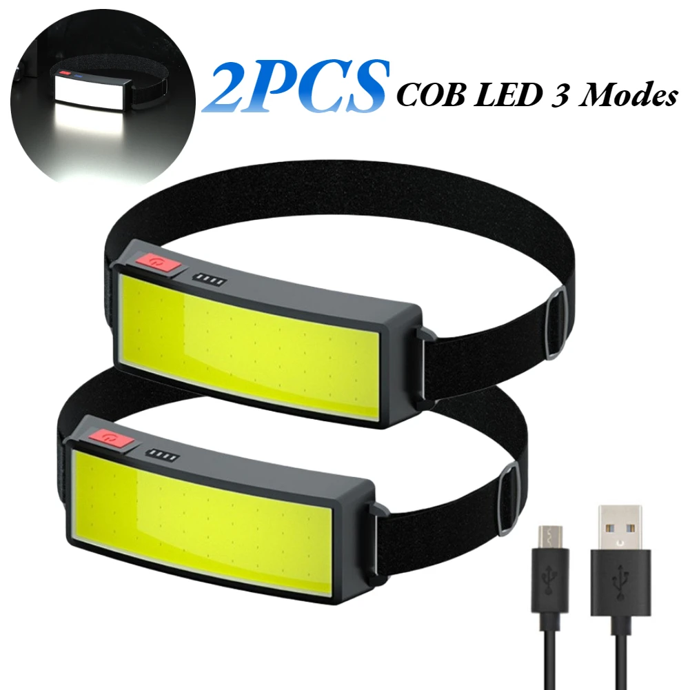 Портативный налобный фонарь, светодиодный COB фонарь со встроенным аккумулятором, зарядка по USB, уличный фонарь для кемпинга, 500 лм, 2 шт.