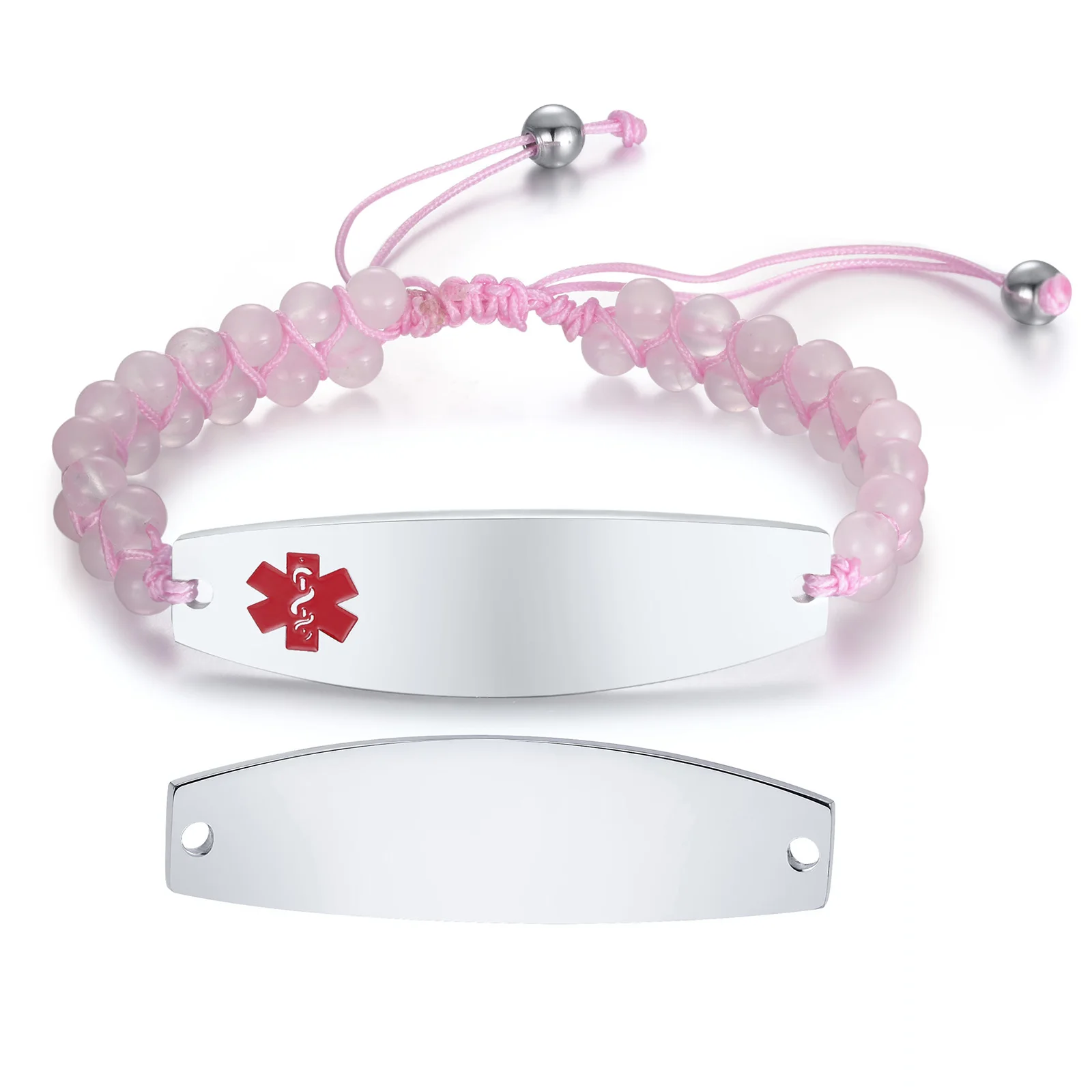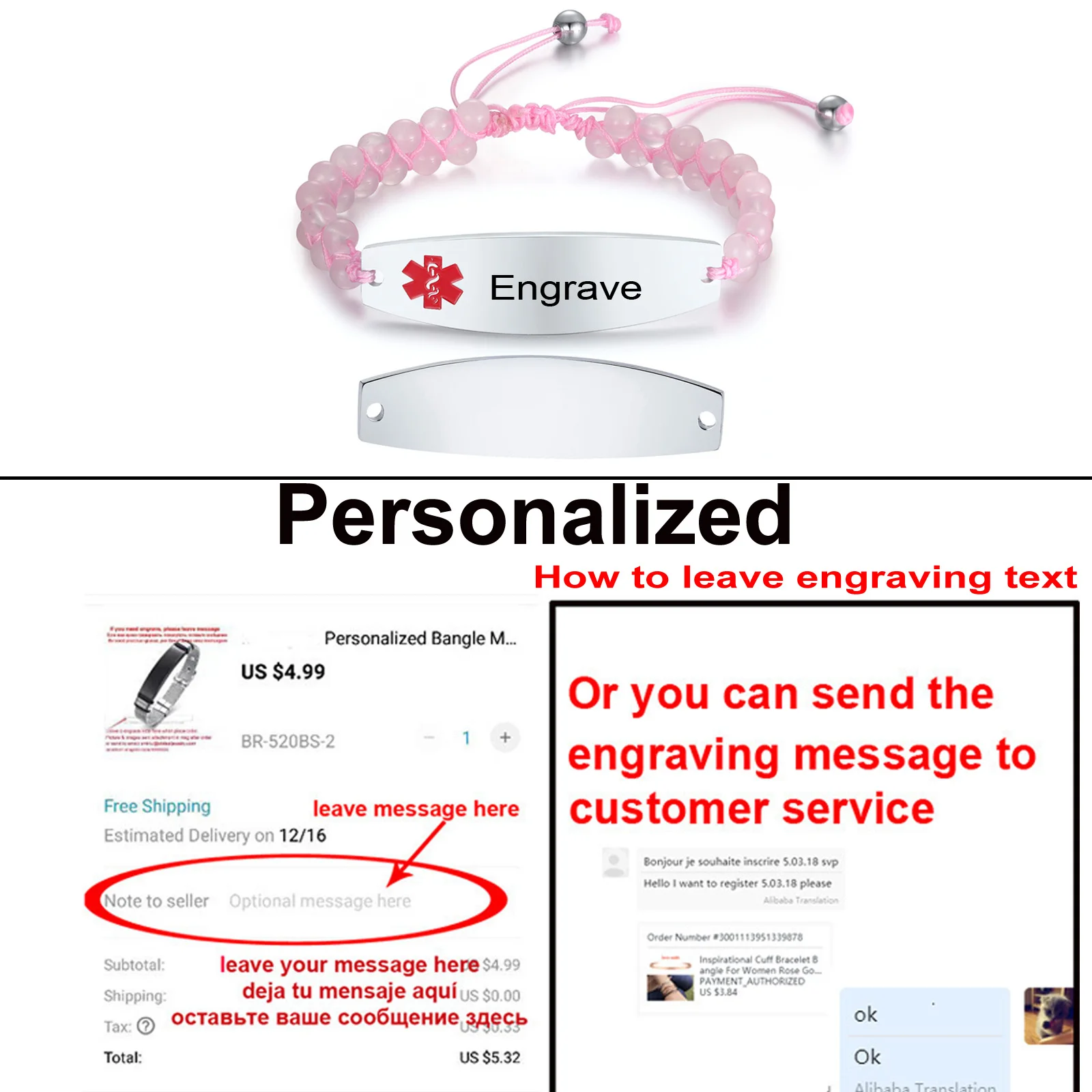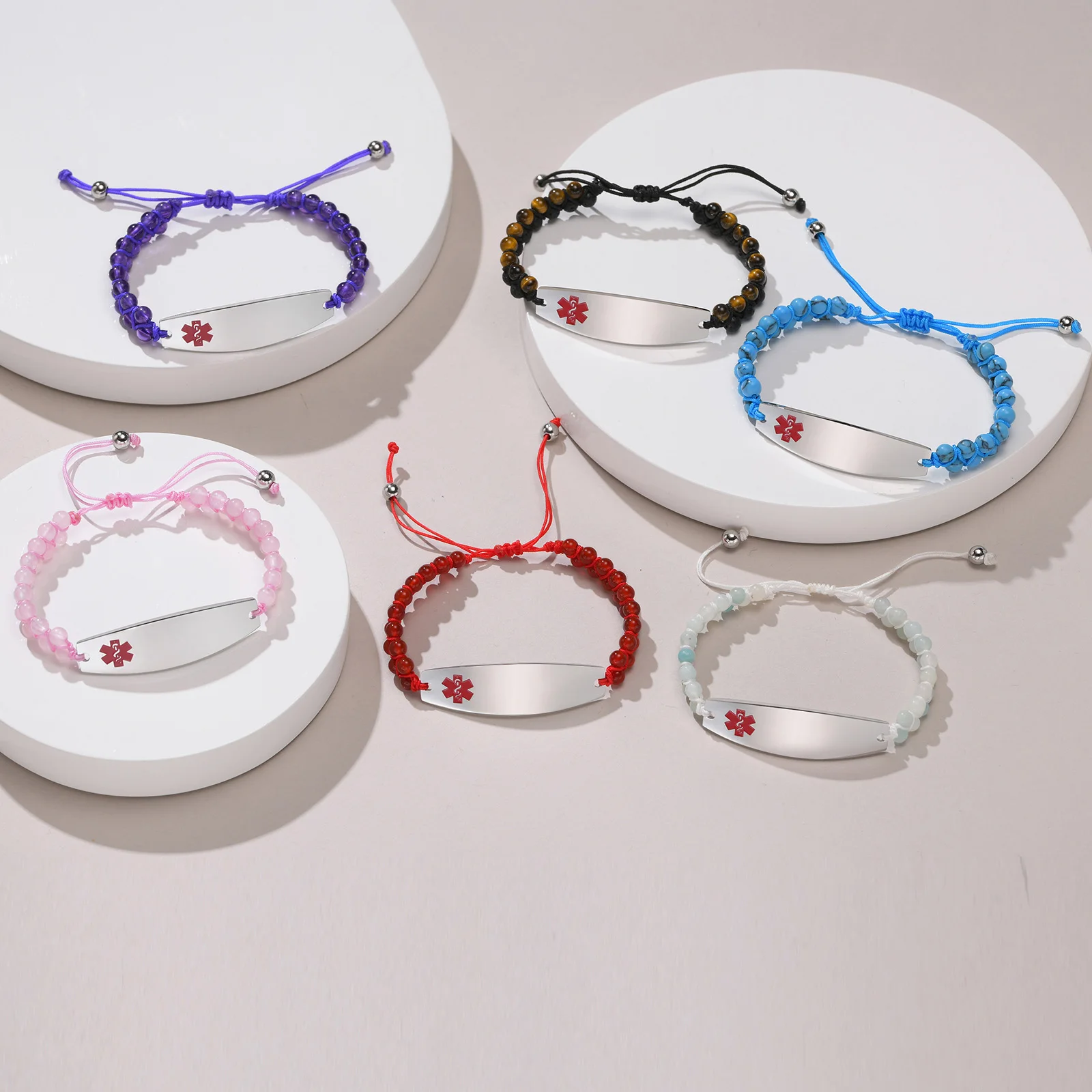Регулируемый, с бусинами, звено цепи, медицинское оповещение, ID браслет для женщин, Бесплатная гравировка браслет, Аварийный Браслет "диабетик"