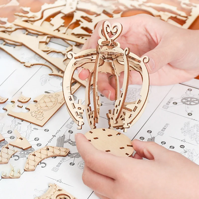 Набор поставляется с четкой, простой и очень подробной инструкцией с иллюстрациями. Каждая модель деревянного трюка-это 3D пазл. Сборка механических моделей требует пространственных, тактильных и моторических навыков. Такие процессы особенно полезны для детей, так как они улучшают творческие навыки мышления, развивают навыки критического мышления и развивают навыки решения проблем и мышления, так как дети используют свои фантазии.