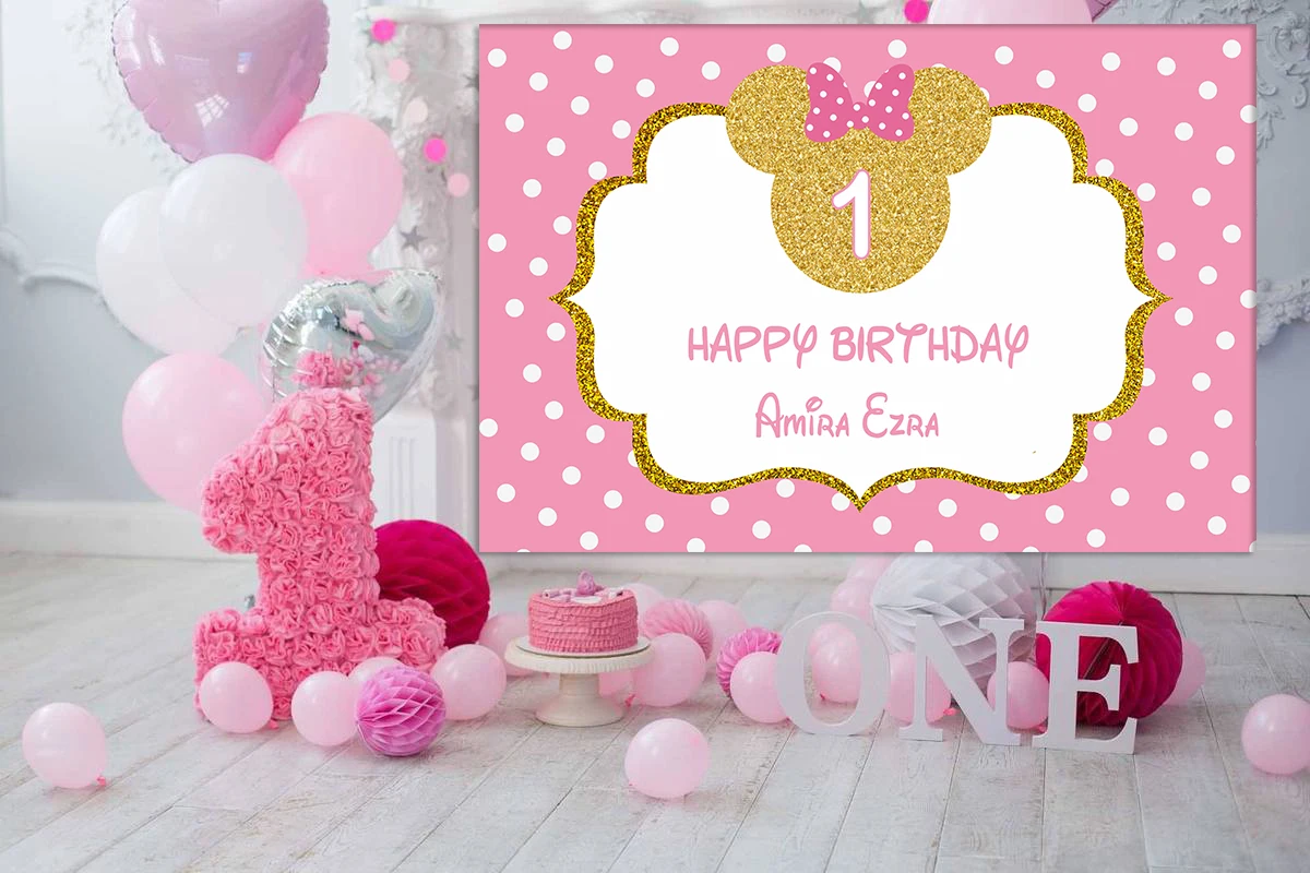 Пользовательский мини розовый Золотой мышь Вечеринка фон для фотосъемки девочек детский баннер с именем девичника украшение на день рождения
