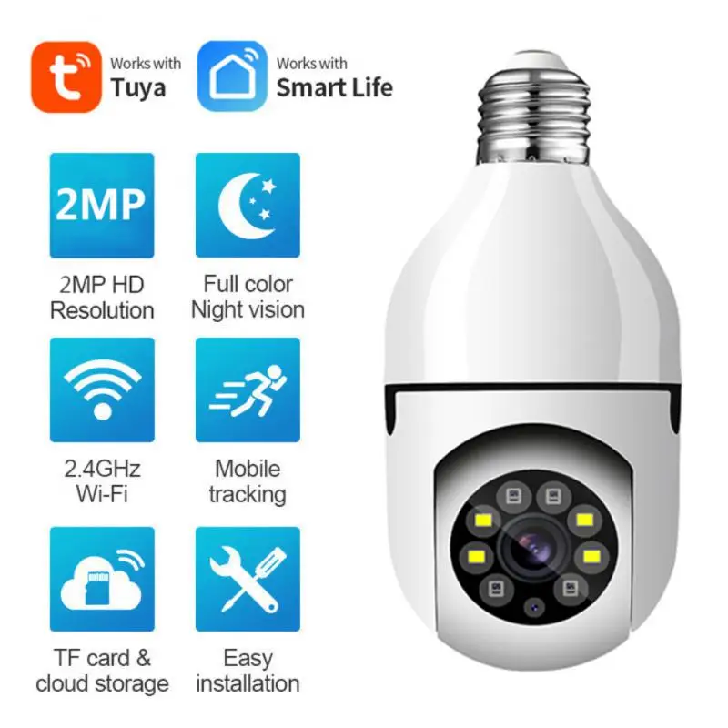 Умная камера видеонаблюдения Tuya с лампочками E27, 2 Мп, 1080P, Wi-Fi, IP, PTZ