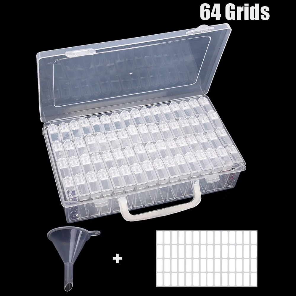 56/64 прозрачная пластиковая коробка для хранения Алмазная мозаика аксессуары для дизайна ногтей Стразы контейнер для бисера Органайзер чемодан инструмент