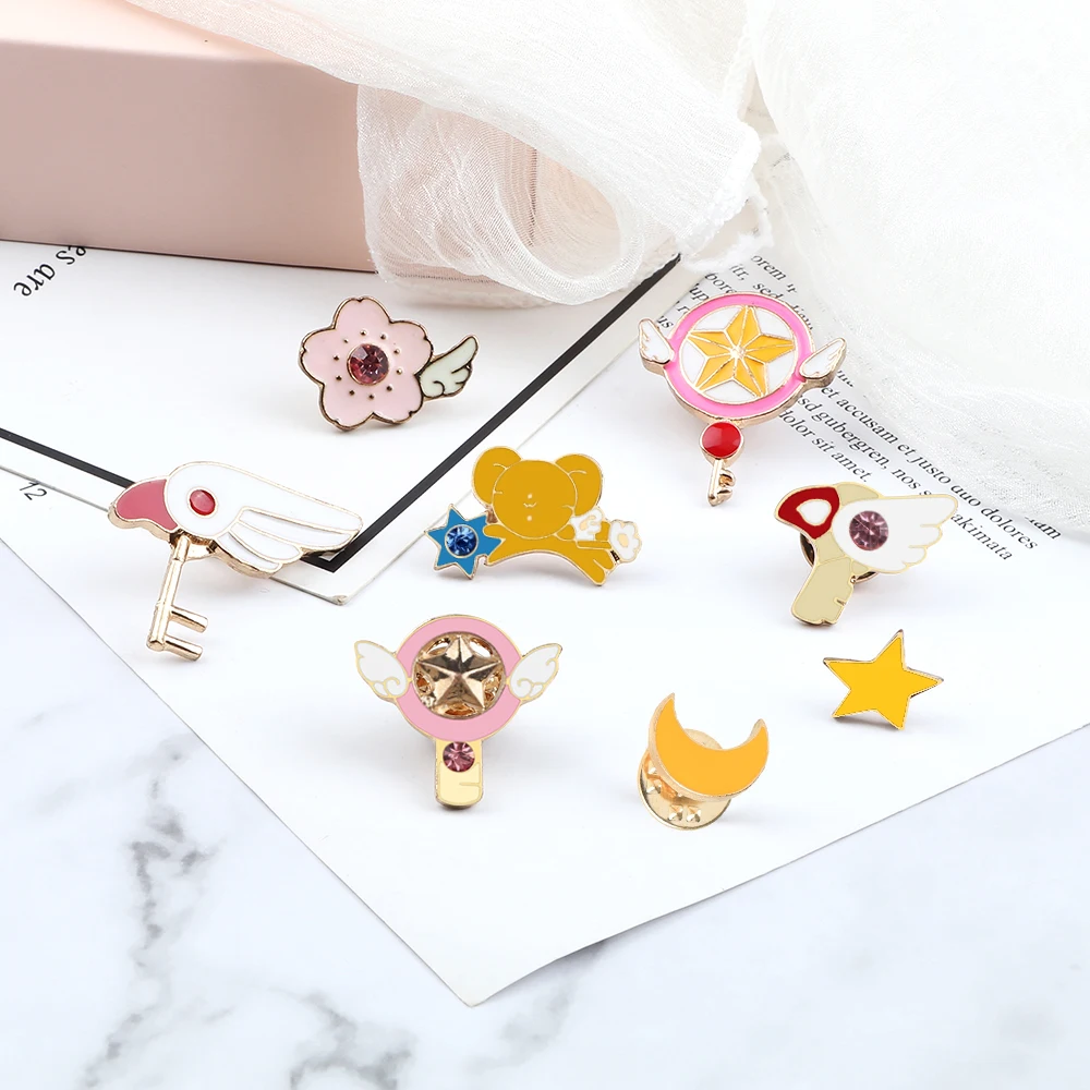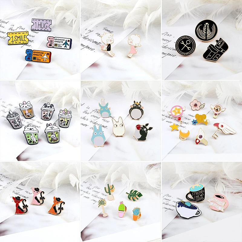 Броши с персонажами аниме 2-8 шт.компл., значки с различными героями мультфильмов, серия Сакура, тоторы, элегантные эмалированные значки с кошками и зелеными растениями, ювелирные изделия