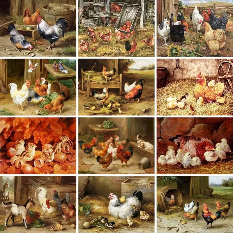 GATYZTORY 60x75 см рамка для самостоятельной раскраски по номерам курица животного краска по номерам домашние декорации ручной работы