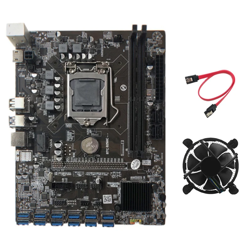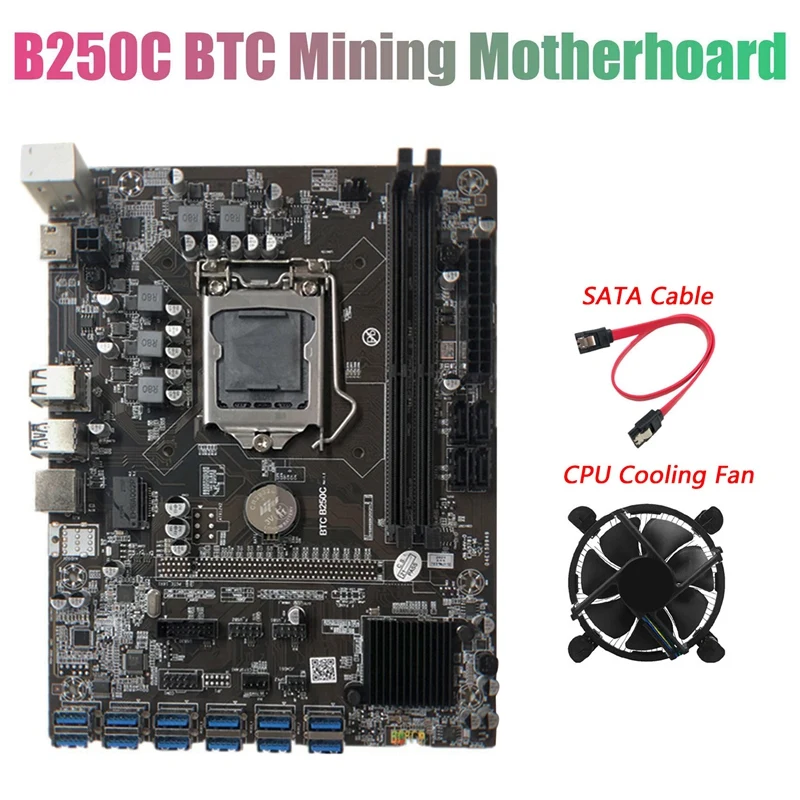Материнская плата B250C для майнинга BTC с вентилятором и кабелем SATA, графический слот 12xpcie для USB3.0, LGA1151, поддерживает DDR4, DIMM RAM