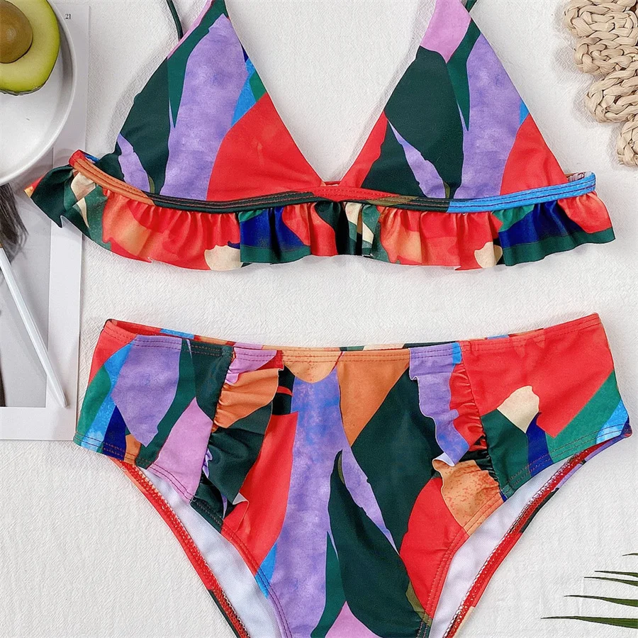 2022 сексуальный комплект бикини с цветным принтом, женский купальник, треугольный микро-бикини, купальник с высокой талией, женский купальный костюм, пляжная одежда