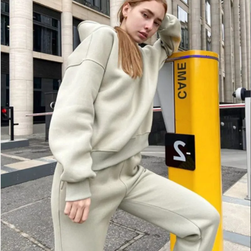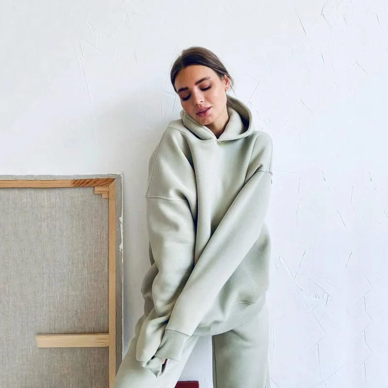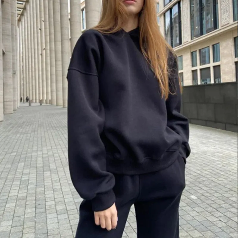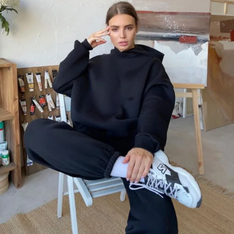 Костюм спортивный женский из 2 предметов, толстовка с капюшоном и брюки в стиле оверсайз, повседневный спортивный костюм, зимняя одежда