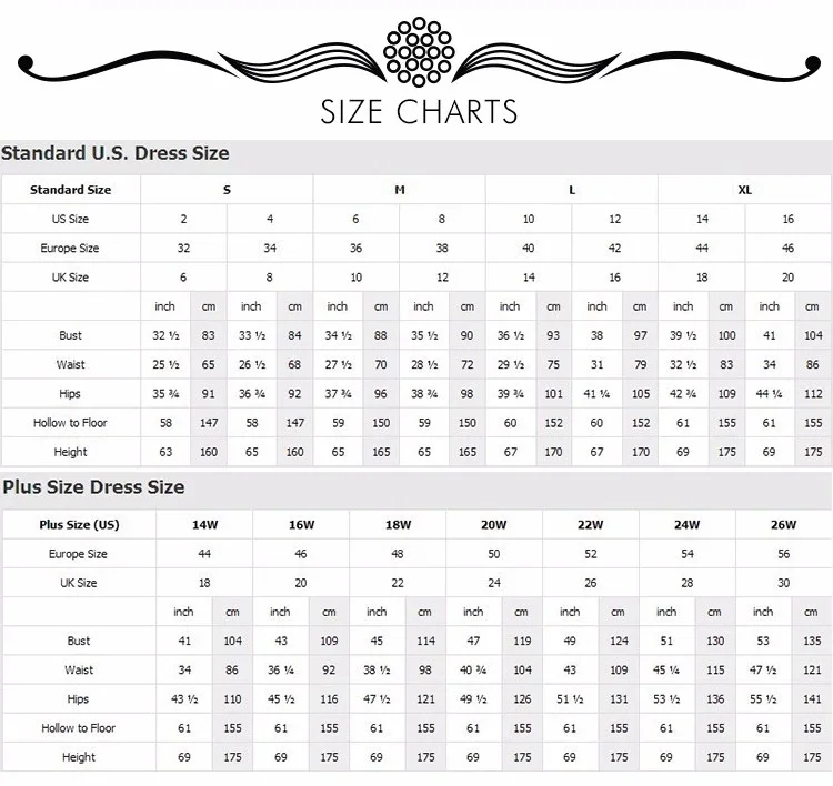Вы можете выбрать любой размер, чтобы сделать заказ и оставить нам сообщение о ваших собственных измерениях, так как это будет нормально!1); Обхват груди; Длина _ 2); Талия: _ 3) бедра _4) полые в пол без обуви _5) естественная высота без обуви _6) Примерная высота каблука обуви, которая может использоваться для этого платья _Внимание: для нормального размера, мы предлагаем бесплатный заказ, но если размер слишком большой, превосходит 18W, это будет нужно 20 $ ~ 35 $ дополнительную плату!