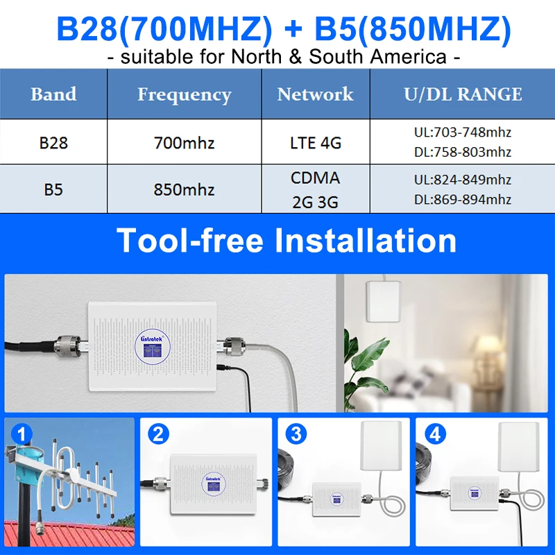 Данная модель в700 МГц и 850 МГц(В28 и В5) Только, когда частота совпадает, это может работать. Пожалуйста, проверьте ваш диапазон частот, прежде чем вы покупаете. Спасибо за понимание.