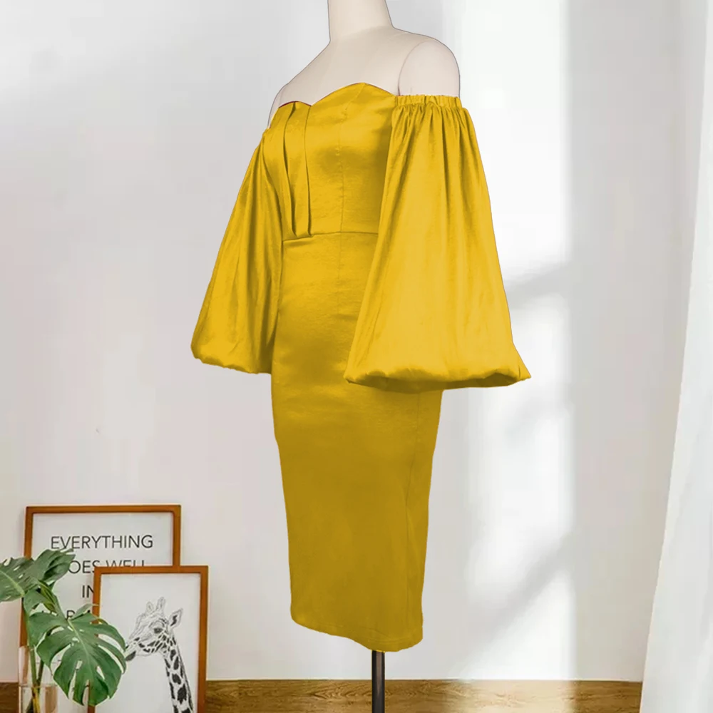 Платье-миди женское, с открытыми плечами и рукавами-фонариками
