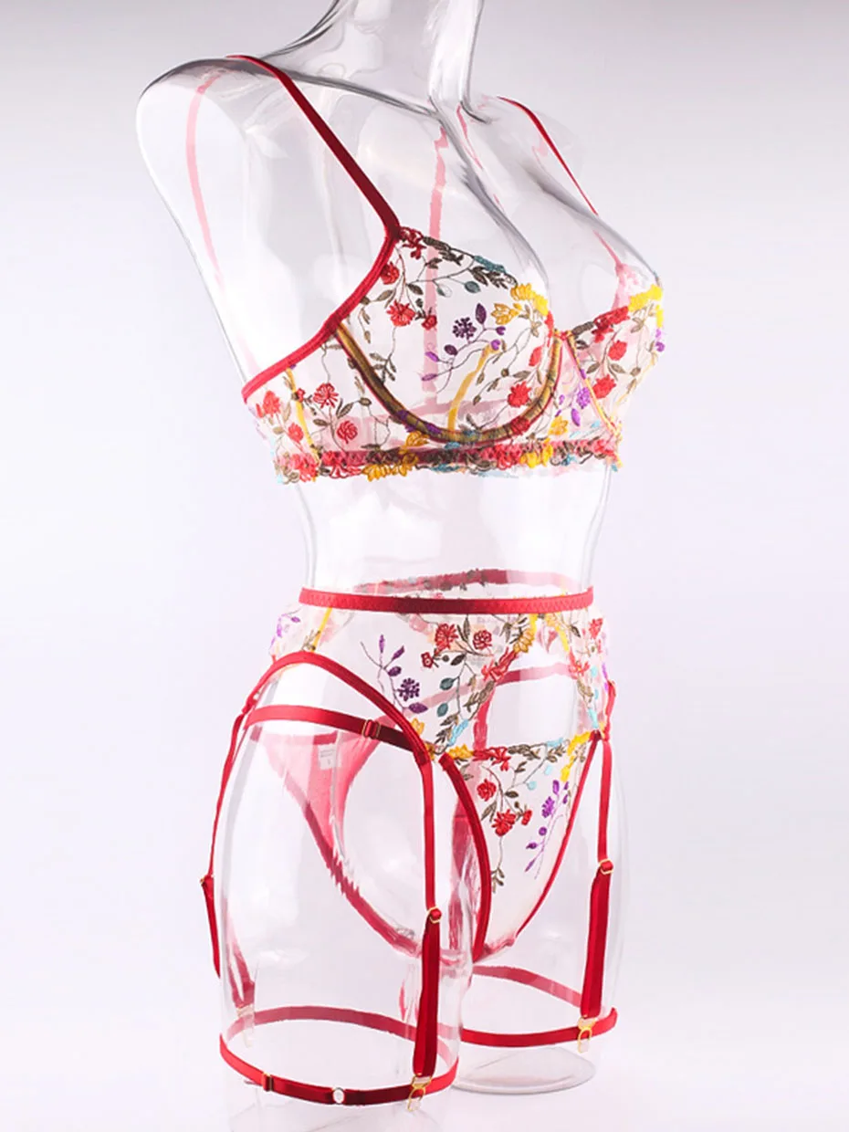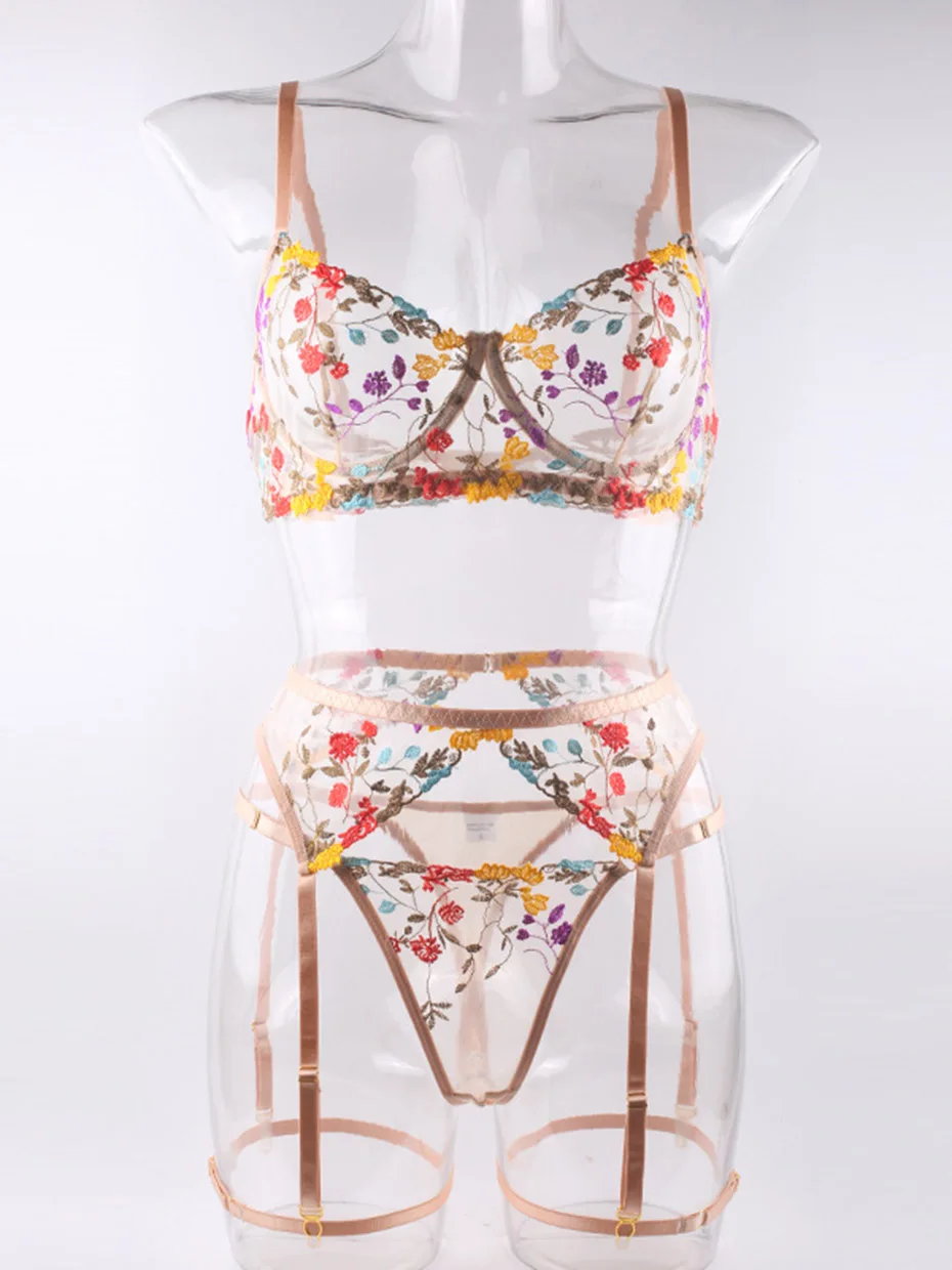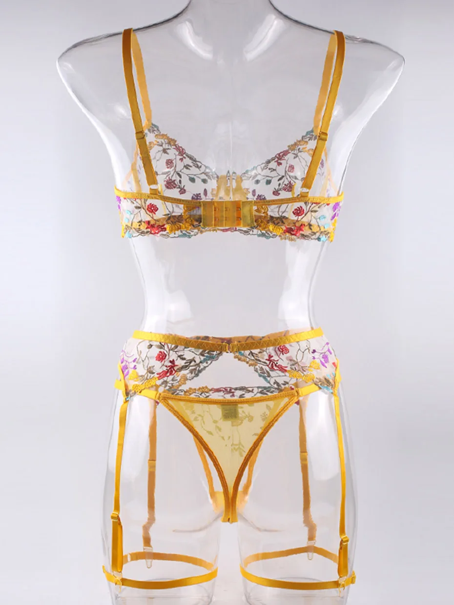 Сексуальный комплект с бюстгальтером и трусиками, нижнее белье, желтый кружевной прозрачный женский комплект нижнего белья с вышивкой, Комплект эротического нижнего белья, костюмы нижнего белья