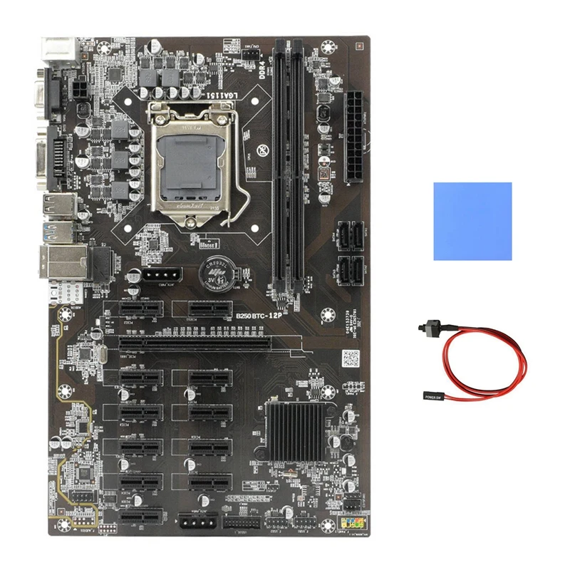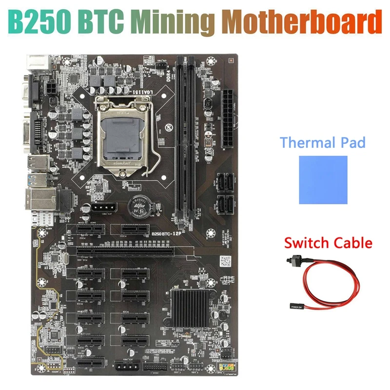 Материнская плата B250 для майнинга BTC с термальной подушкой и кабелем переключения, 12 слотов для графической карты LGA 1151 USB3.0 SATA 3,0 для майнинга BTC