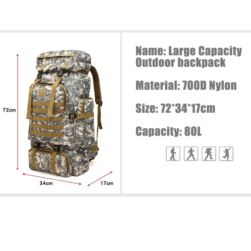 Уличная спортивная сумка для альпинизма 80 л, водонепроницаемый Камуфляжный Тактический Рюкзак Molle, военный армейский рюкзак для походов и кемпинга, дорожный рюкзак