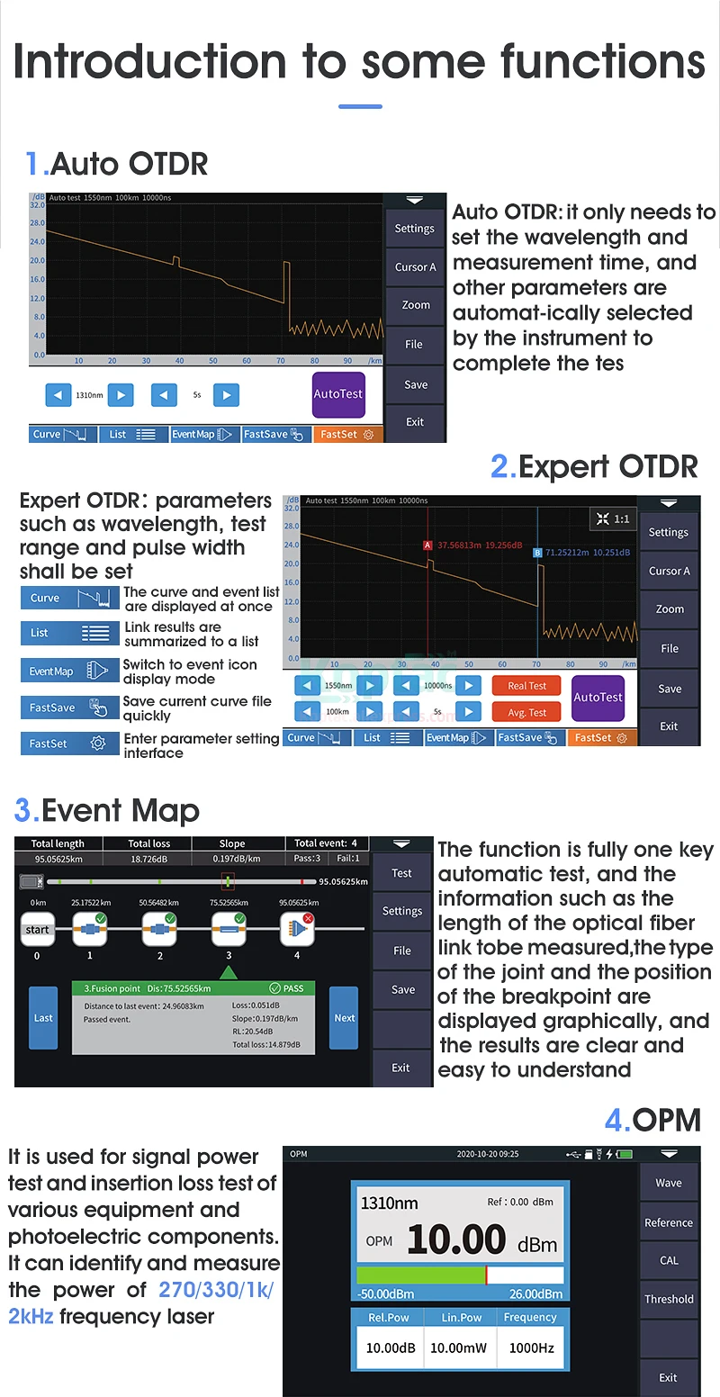 Новый волоконно-оптический рефлектометр OTDR 1310 нм дБ, сенсорный экран, тестер кабелей VFL OLS OPM, карта событий, Ethernet