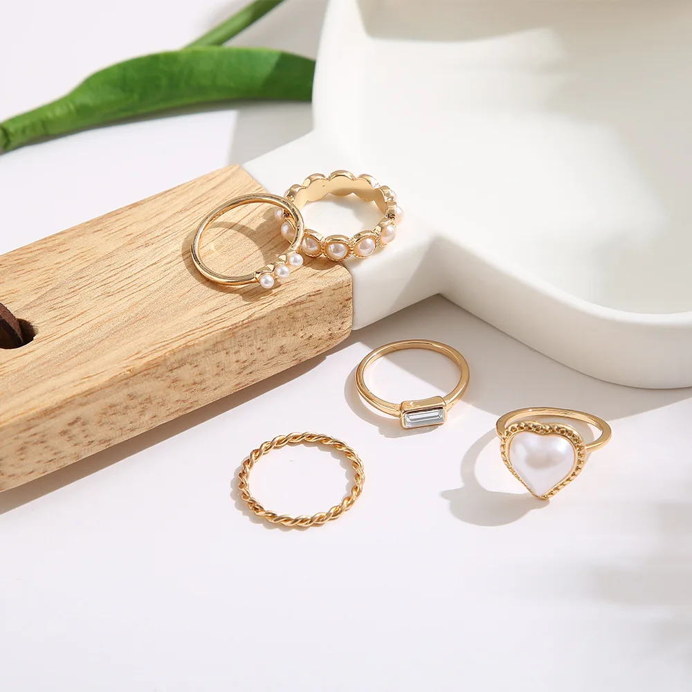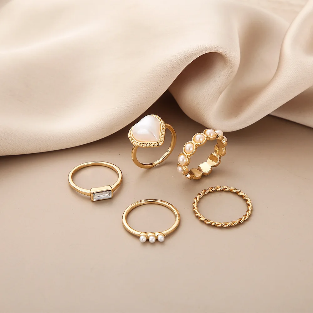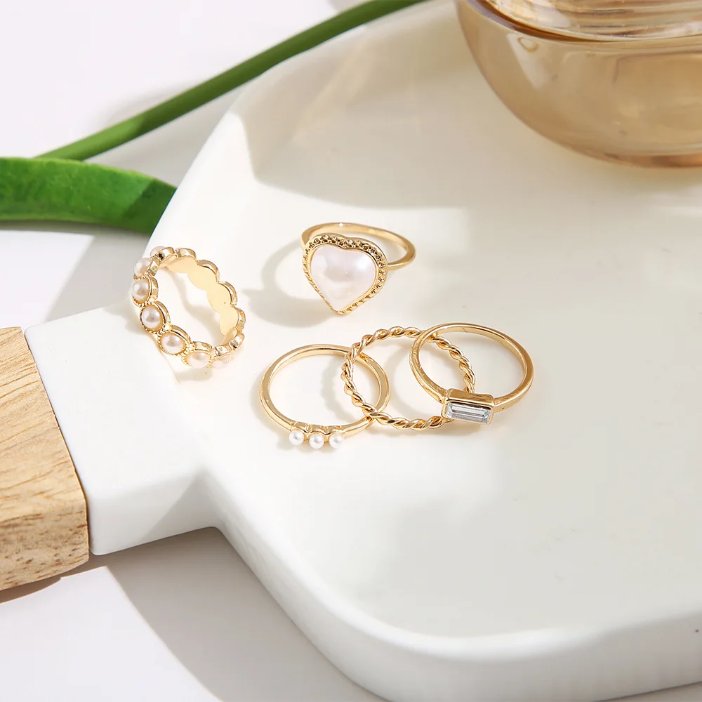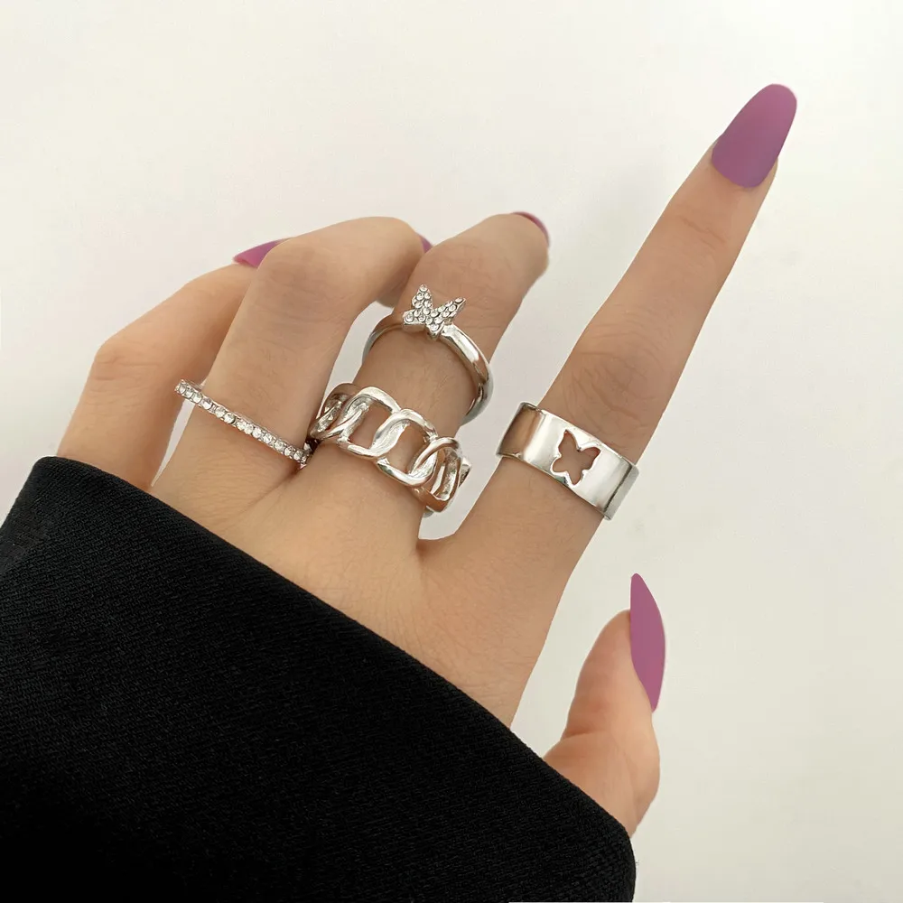 Комплект колец с треугольным крестом, сердечком, бабочкой, 5 шт.компл.