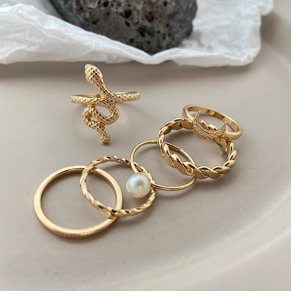 Набор модных винтажных колец в стиле бохо для женщин и девушек, зол...