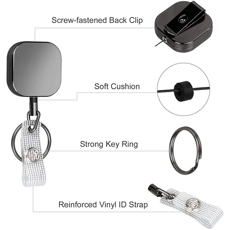 Сверхмощный выдвижной держатель для бейджей, квадратный металлическ...