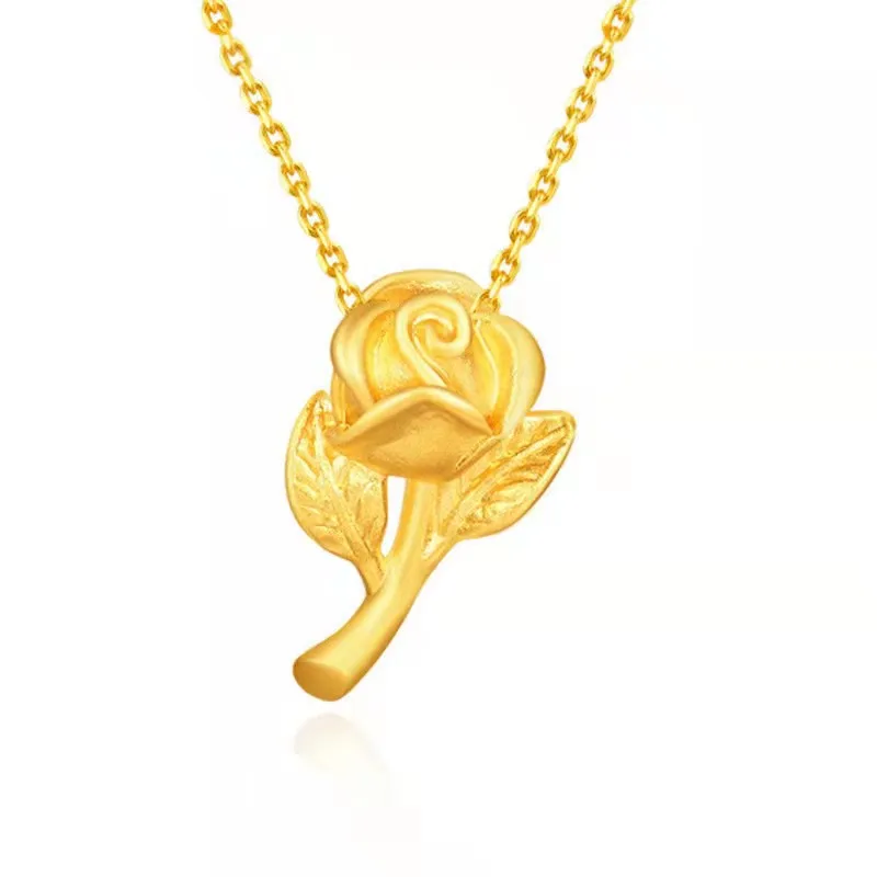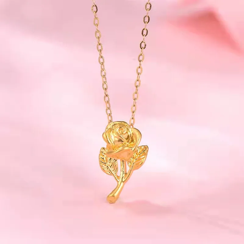 Ожерелье POFUNUO из настоящего золота 999 пробы с подвеской в виде Розы, цепочка из чистого 18-каратного золота AU750 для женщин, ювелирные изделия, свадебный подарок