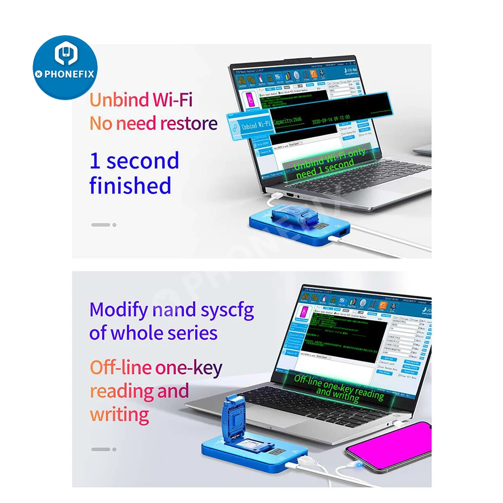 Поддерживает полный спектр устройств ios NAND Disk, Bootcode reflash, syscfg repair. Wifi unlocketc. Более 33 моделей, включая устройства ios ix, поддерживаются коробкой JC P13.