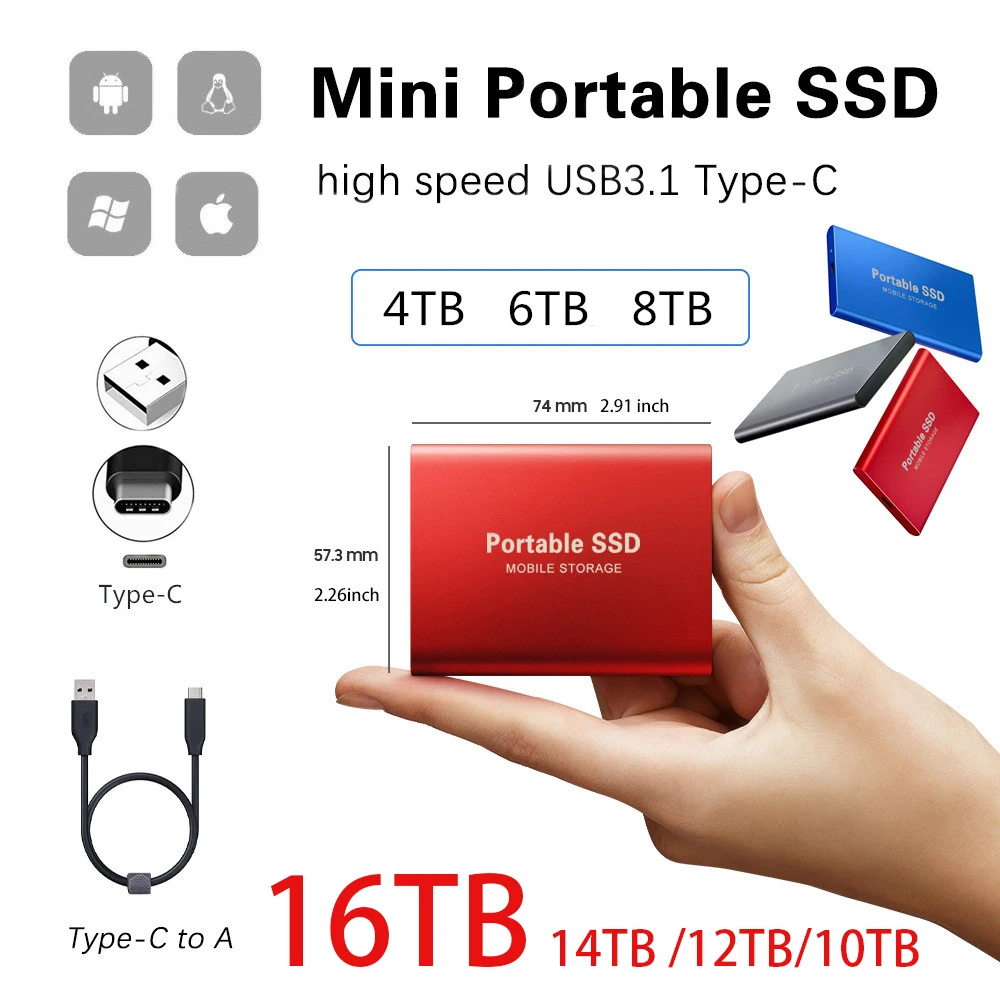 Внешний жесткий диск SSD ТБ 2 ТБ HD Externo 8 ТБ 16 Тб, жесткий диск Harici внешний жесткий диск от 1 до 2 для хранения