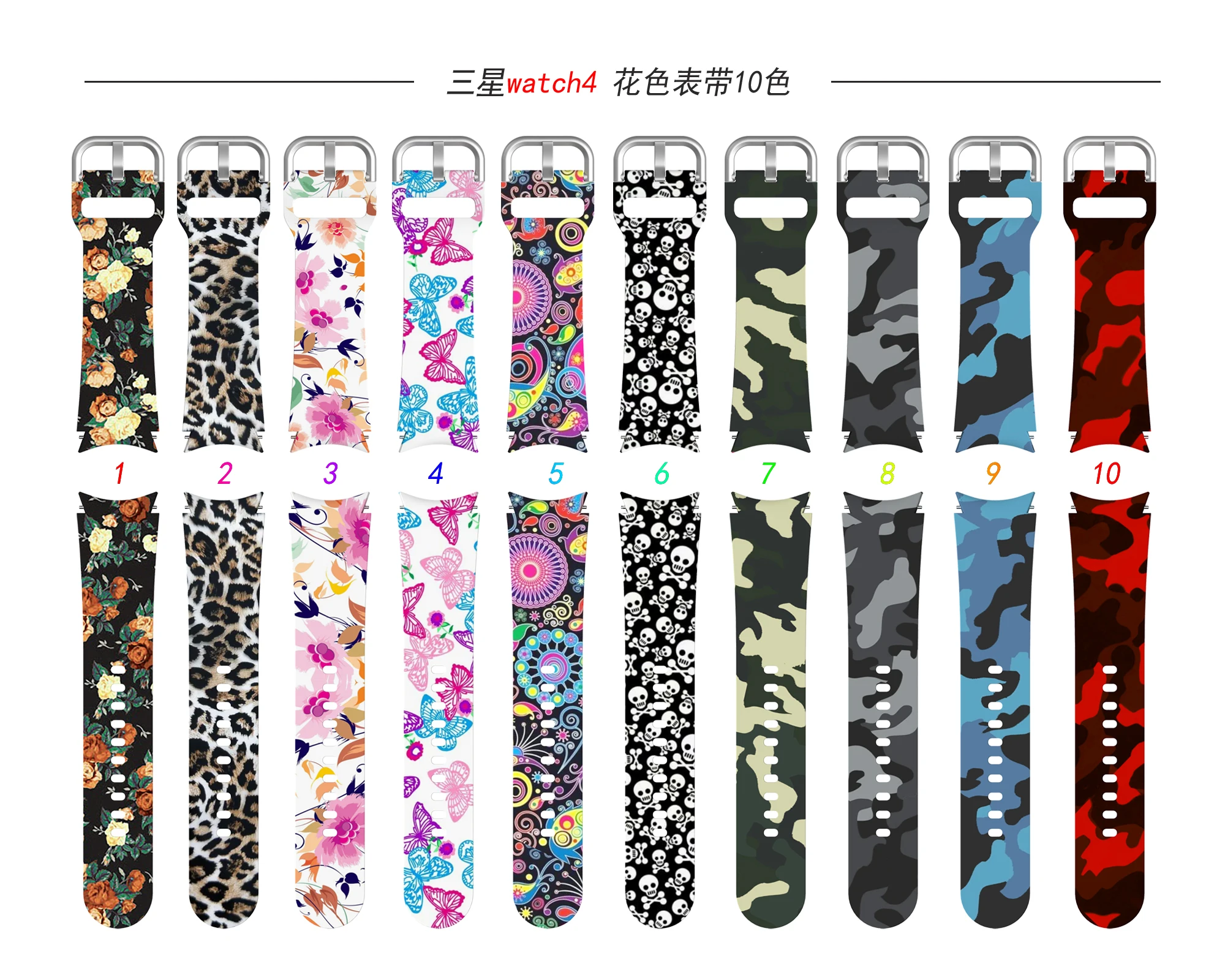 Силиконовый ремешок с принтом для Samsung Galaxy Watch 4, классичес...