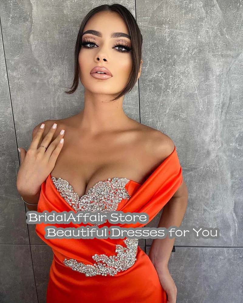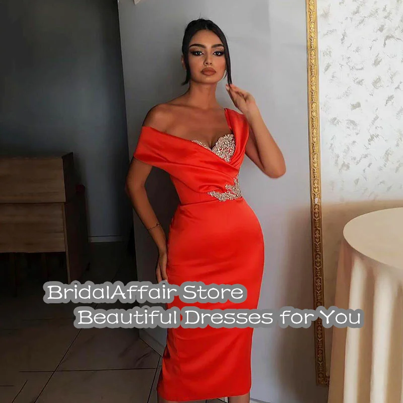 BridalAffair, простое вечернее платье-русалка, атласные бусины, кристаллы, открытые плечи, платья для выпускного вечера, Короткие Формальные женские платья Вечерние