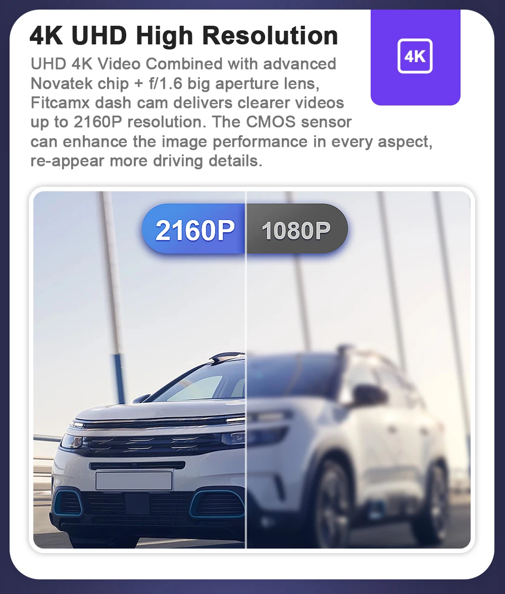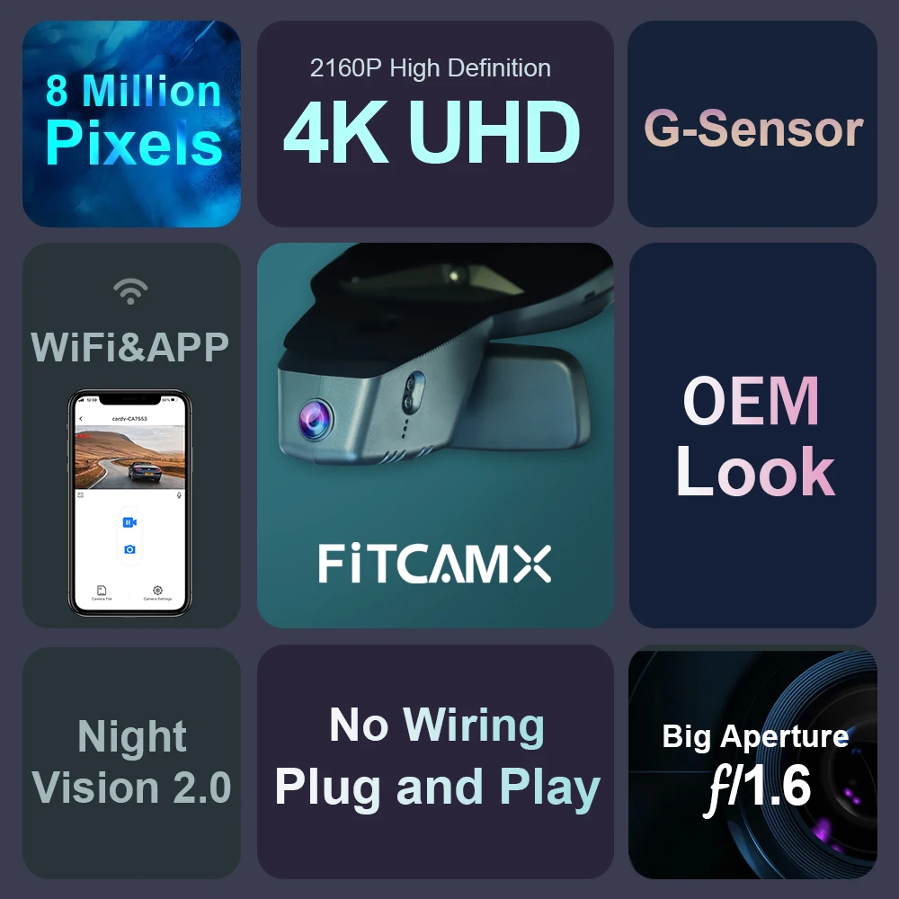 Автомобильный видеорегистратор для Citroen C5 X 2021 2022, видеорегистратор FITCAMX 4K для Citroen C5 X, видеорегистратор ночного видения